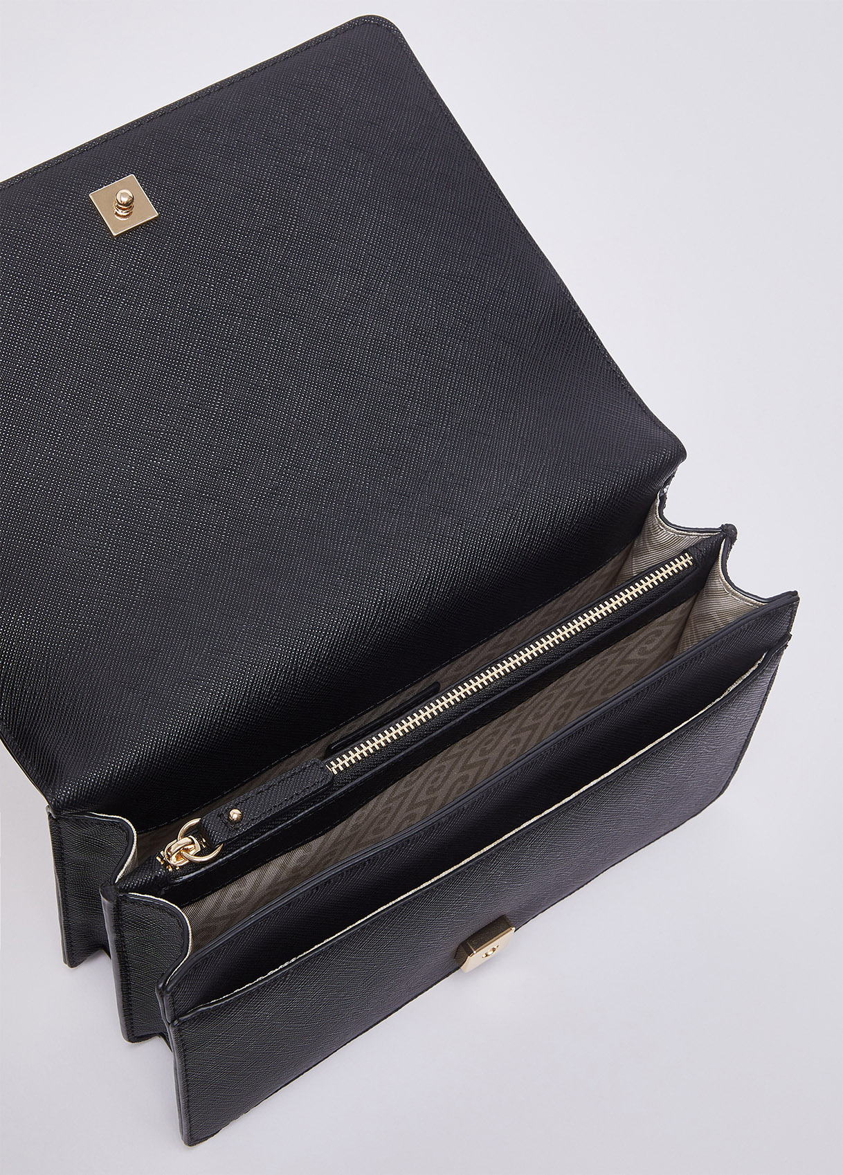 Tre scomparti centrali di cui uno chiuso con zip