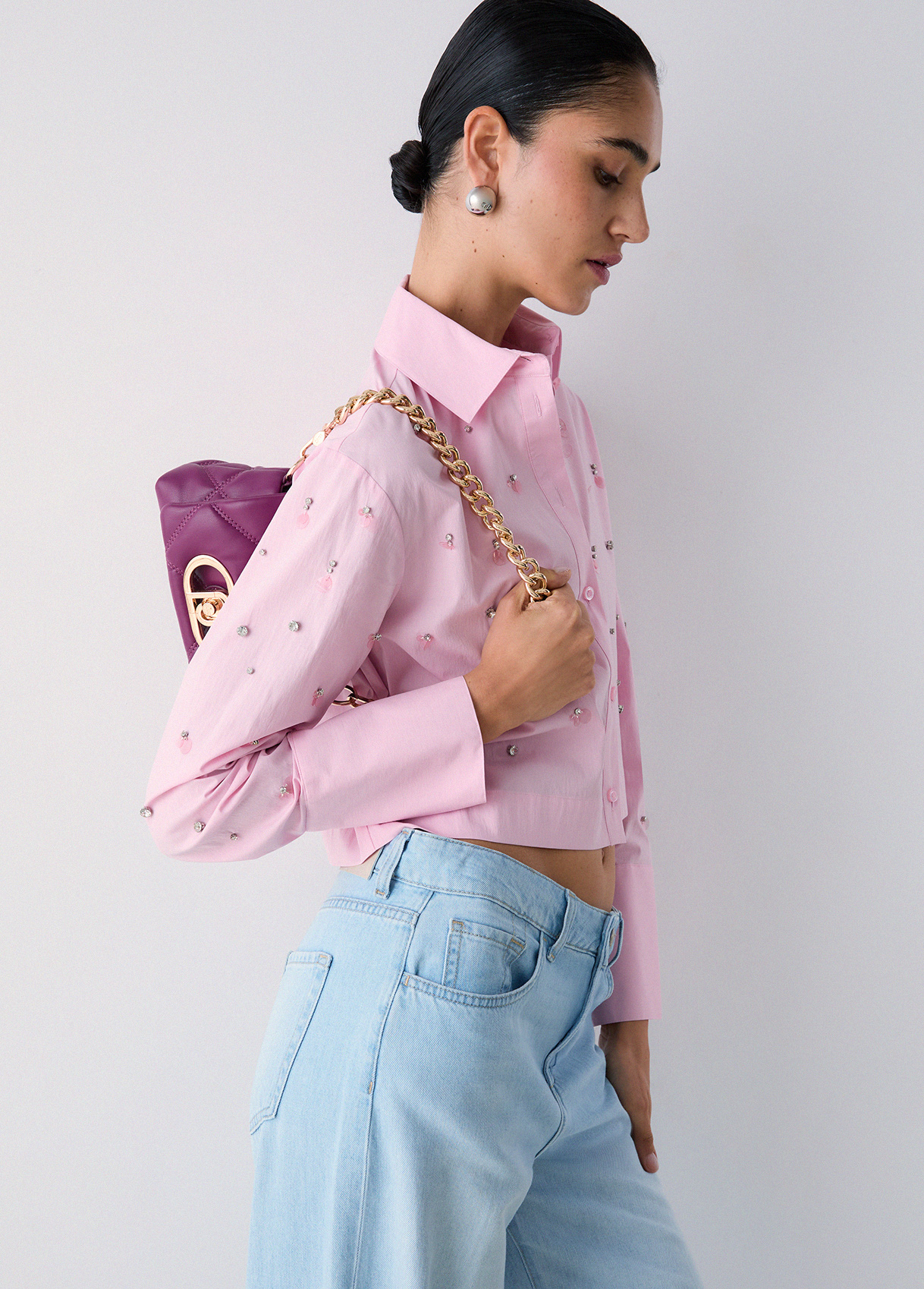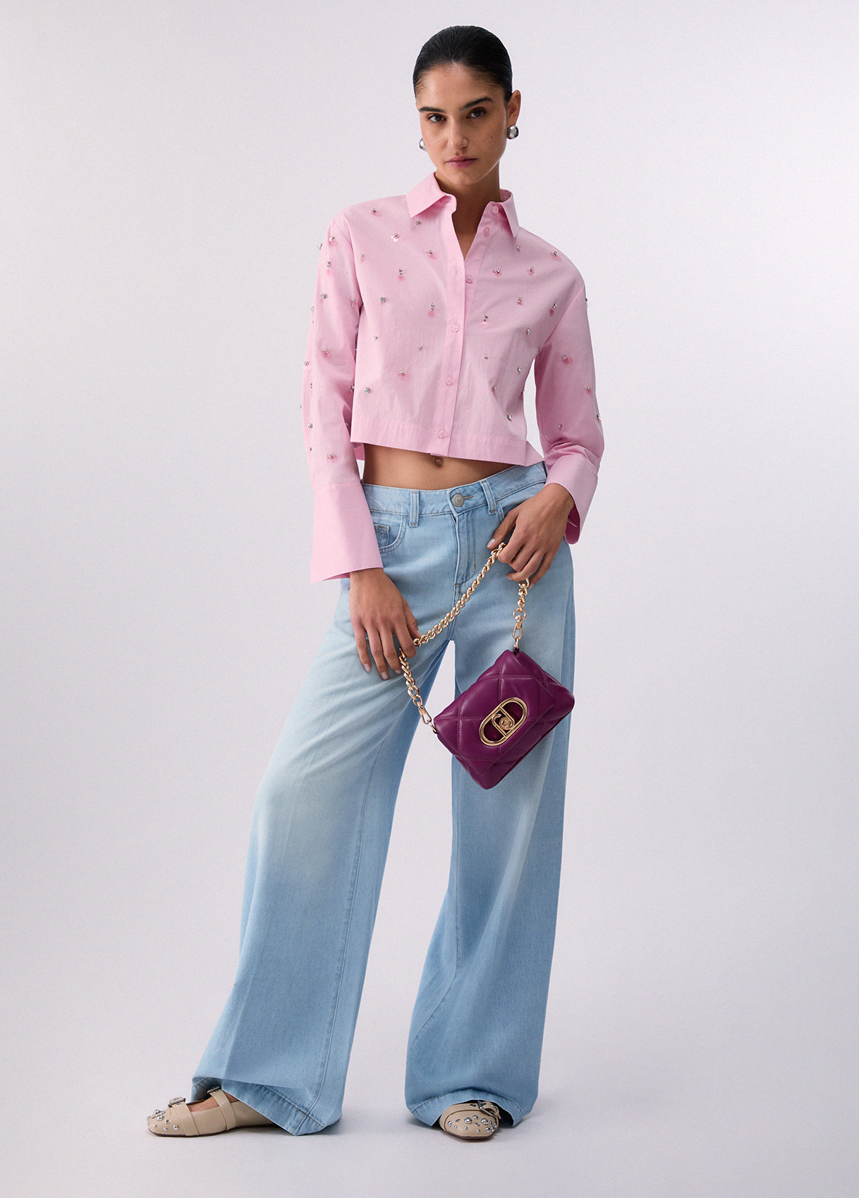 Questa camicia in popeline di cotone illumina il look con delicati ricami gioiello, piccoli punti luce che elevano anche gli outfit più essenziali. La linea pulita e il volume leggero la rendono perfetta dal lavoro allaperitivo, con denim o pantaloni sartoriali. Completa il look con una borsa a spalla e bijoux minimal, per lasciare spazio ai dettagli.