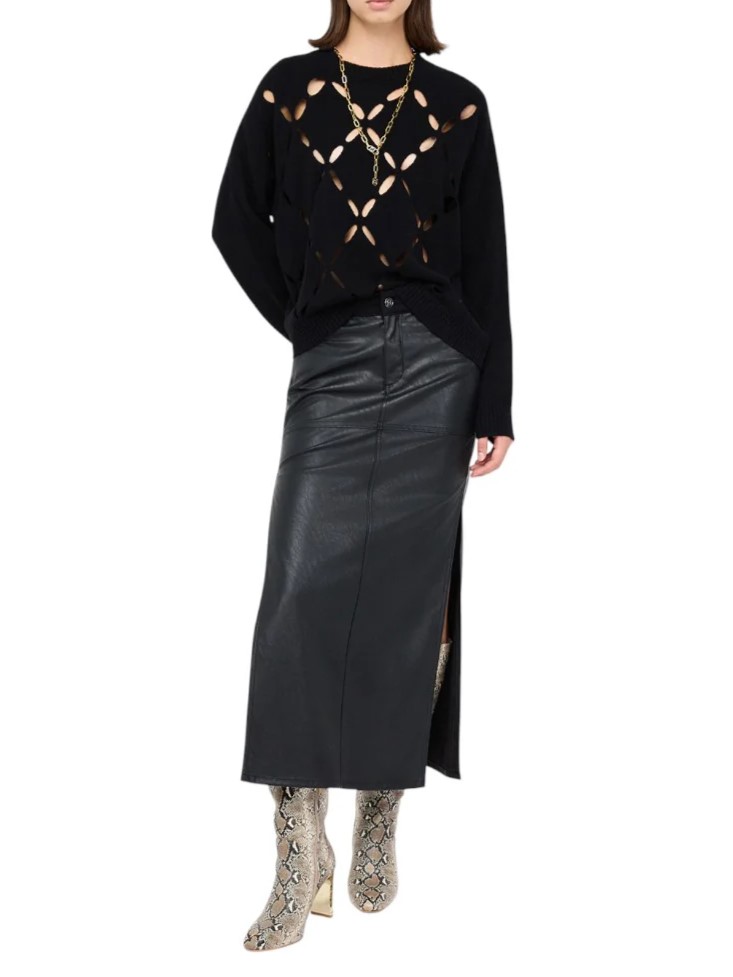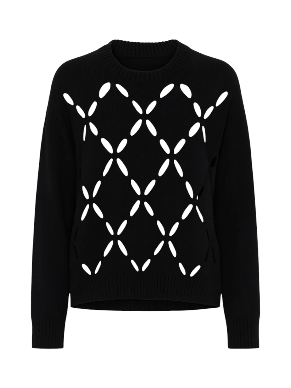 Un delicato disegno geometrico di losanghe dona leggerezza e trasparenza al capo. La sua trama ariosa e sofisticata è impreziosita da ricami gioiello per aggiungere un tocco glam ai tuoi look quotidiani.