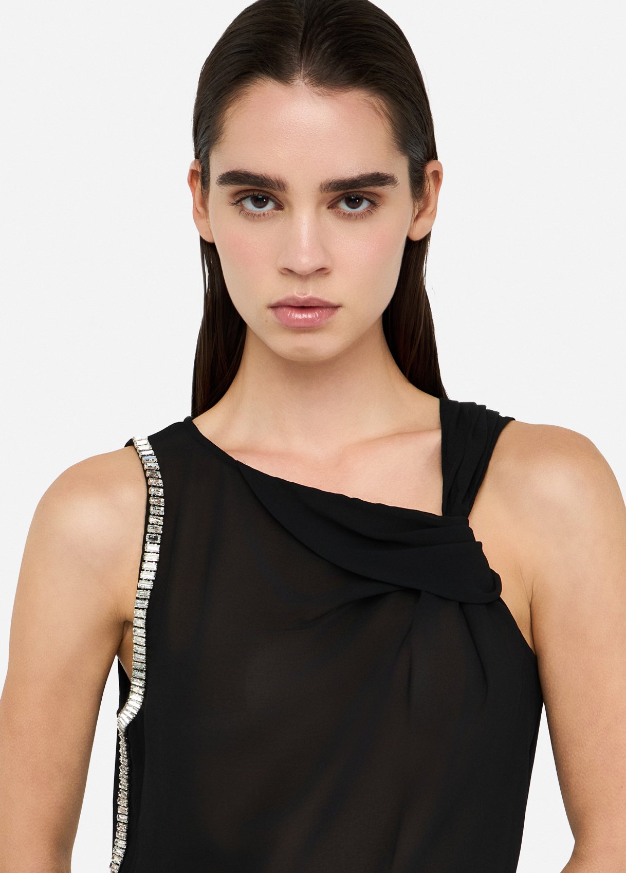Top in jersey di cotone stretch e georgette