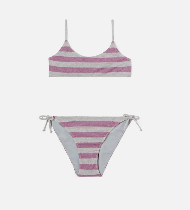 Bikini lurex a righe rosa e argento Jaiden