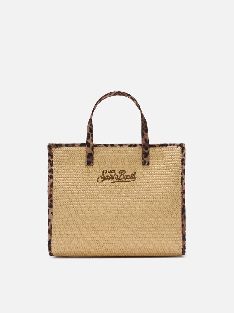 Borsa Vivian medium effetto paglia con patch logo leopardate