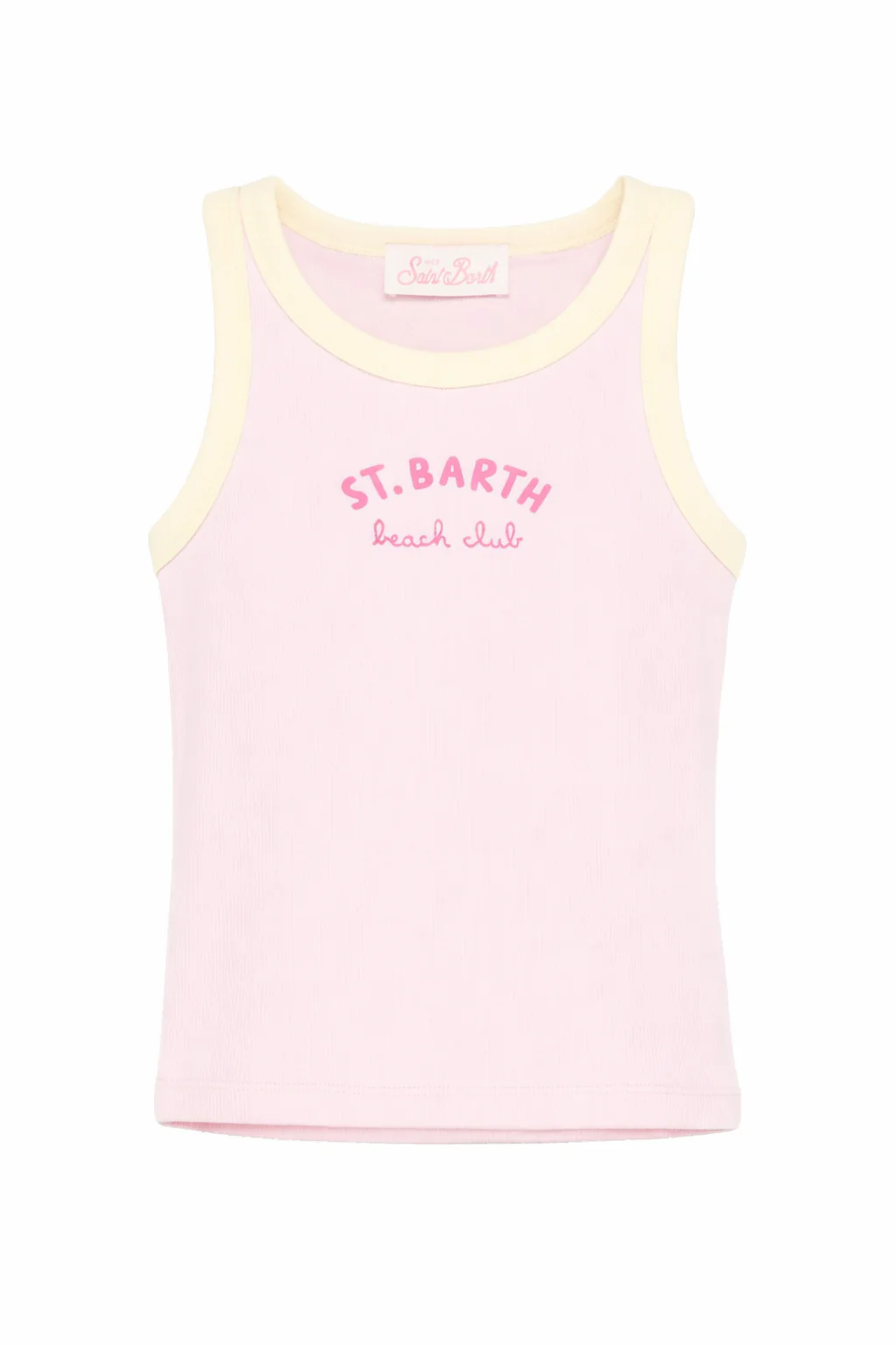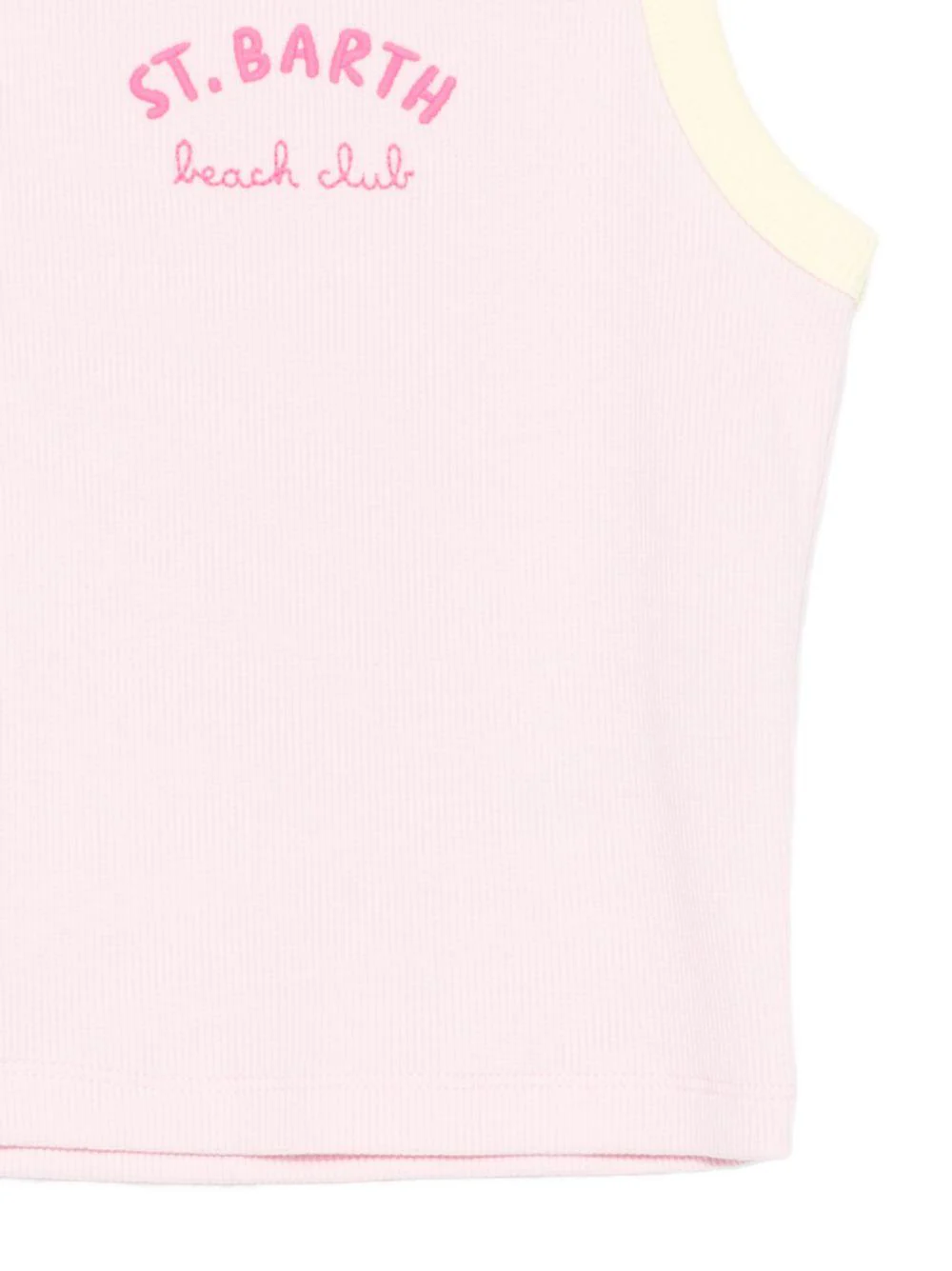 Canotta per bambina MC2 Saint Barth Kids rosa con logo ricamato sul davanti
