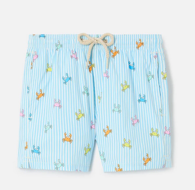 I pantaloncini da bagno Jean Lighting Stretch boys sono progettati per offrire comfort e libertà di movimento durante le giornate estive. Il tessuto elasticizzato e traspirante garantisce una vestibilità confortevole, mentre il motivo a righe è esaltato da una stampa di granchi all-over per un look vivace e giocoso. Una cintura elasticizzata con cordoncino regolabile e una rete interna antibatterica completano il design funzionale.