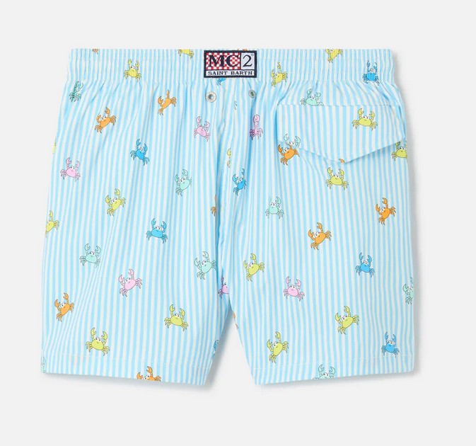 Jean Lighting Pantaloncini da bagno elasticizzati a strisce con stampa granchi all-over