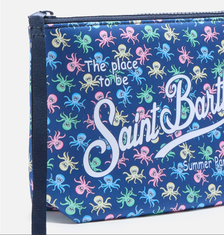 La pochette Aline è pratica e versatile dal design contemporaneo. Realizzata in tessuto scuba, presenta una stampa all-over con polipetti multicolor che dona un tocco vivace e distintivo. Dotata di chiusura con zip e laccetto laterale in gros grain, è perfetta per organizzare lessenziale con stile, facile da abbinare e utilizzare in ogni occasione.