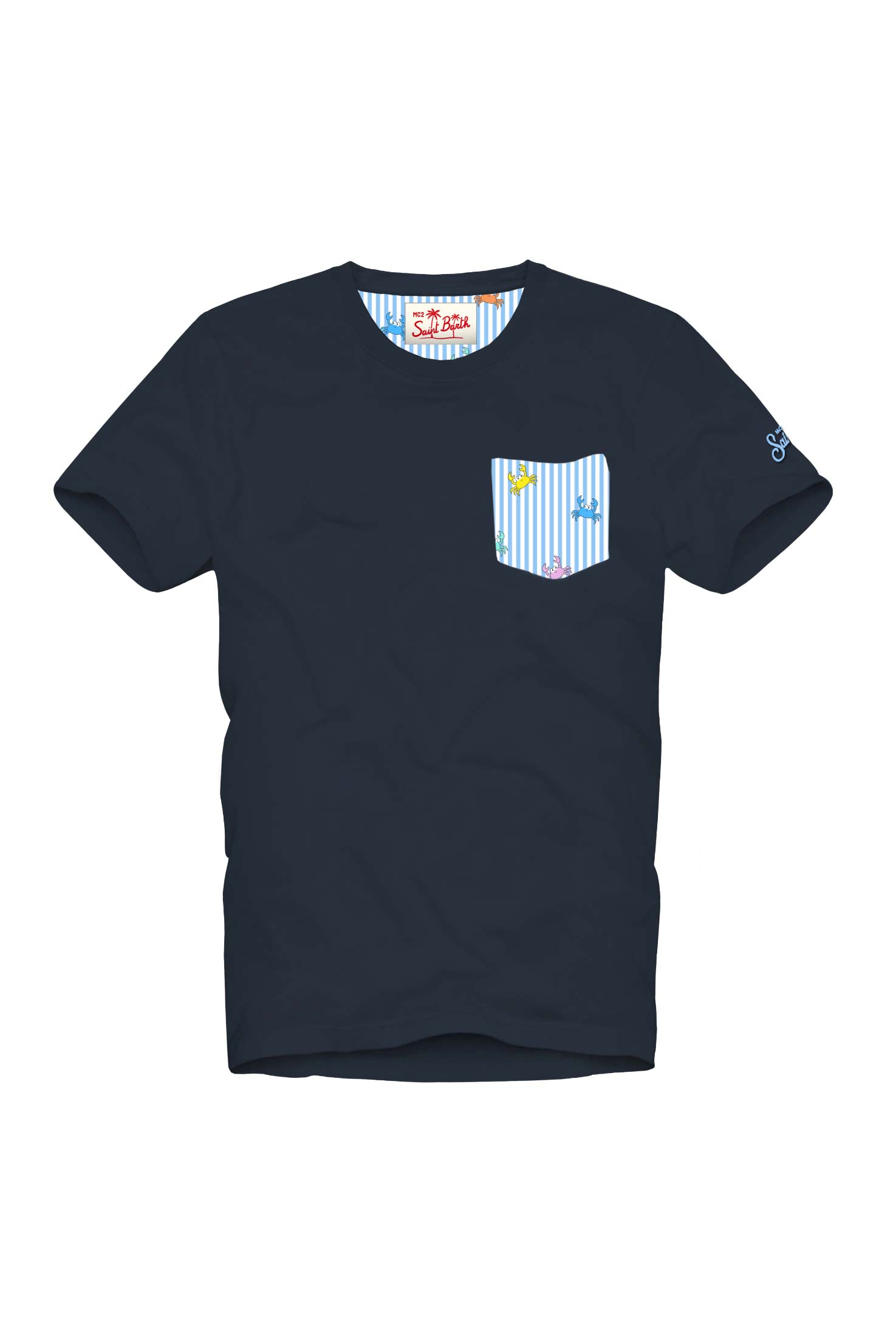 T-shirt in jersey di cotone con stampa blu navy/rosso
