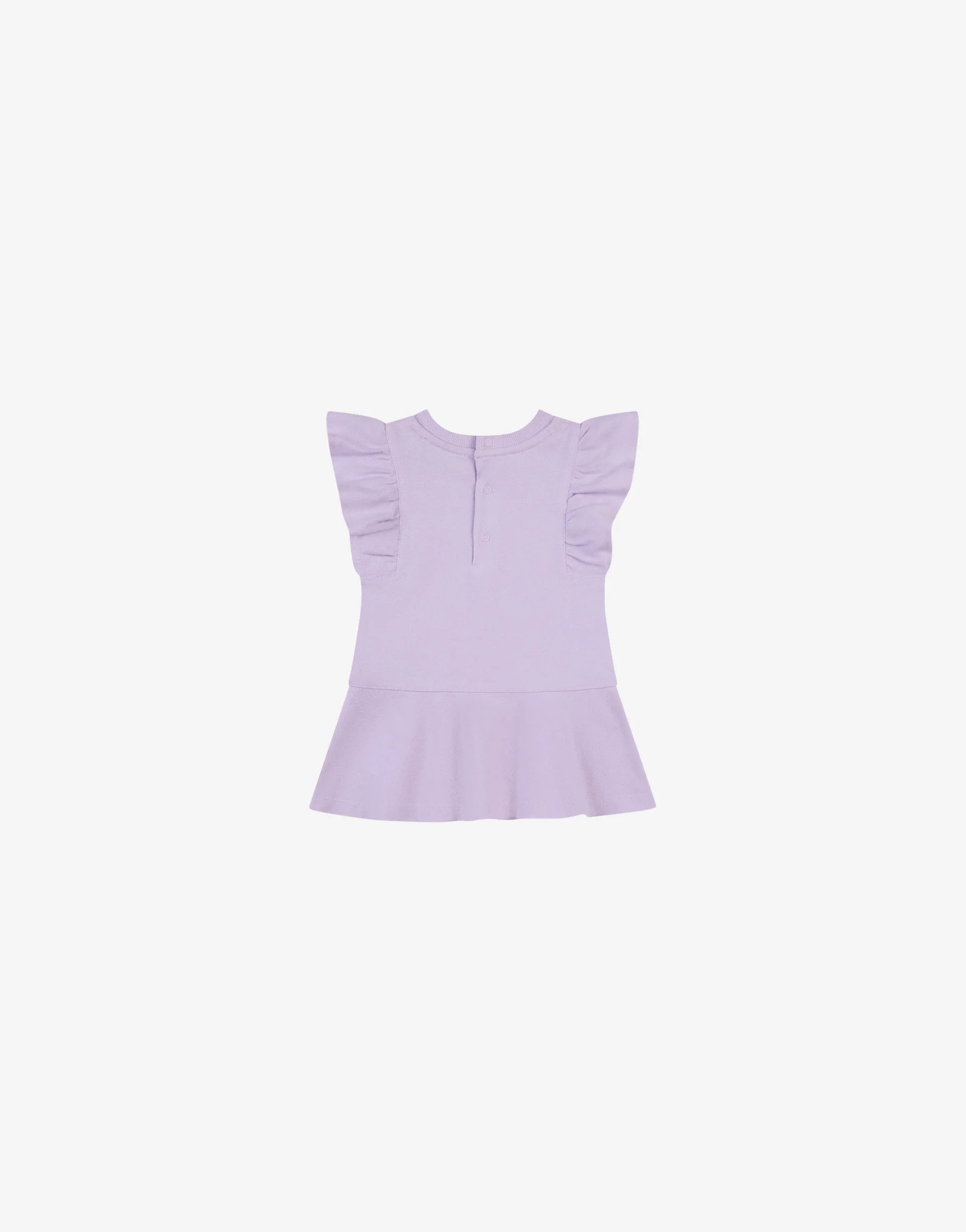 Stampa sul davantiGirocolloSenza manicheRuchesBalza sul fondoChiusura sul dietro con bottoni automatici
