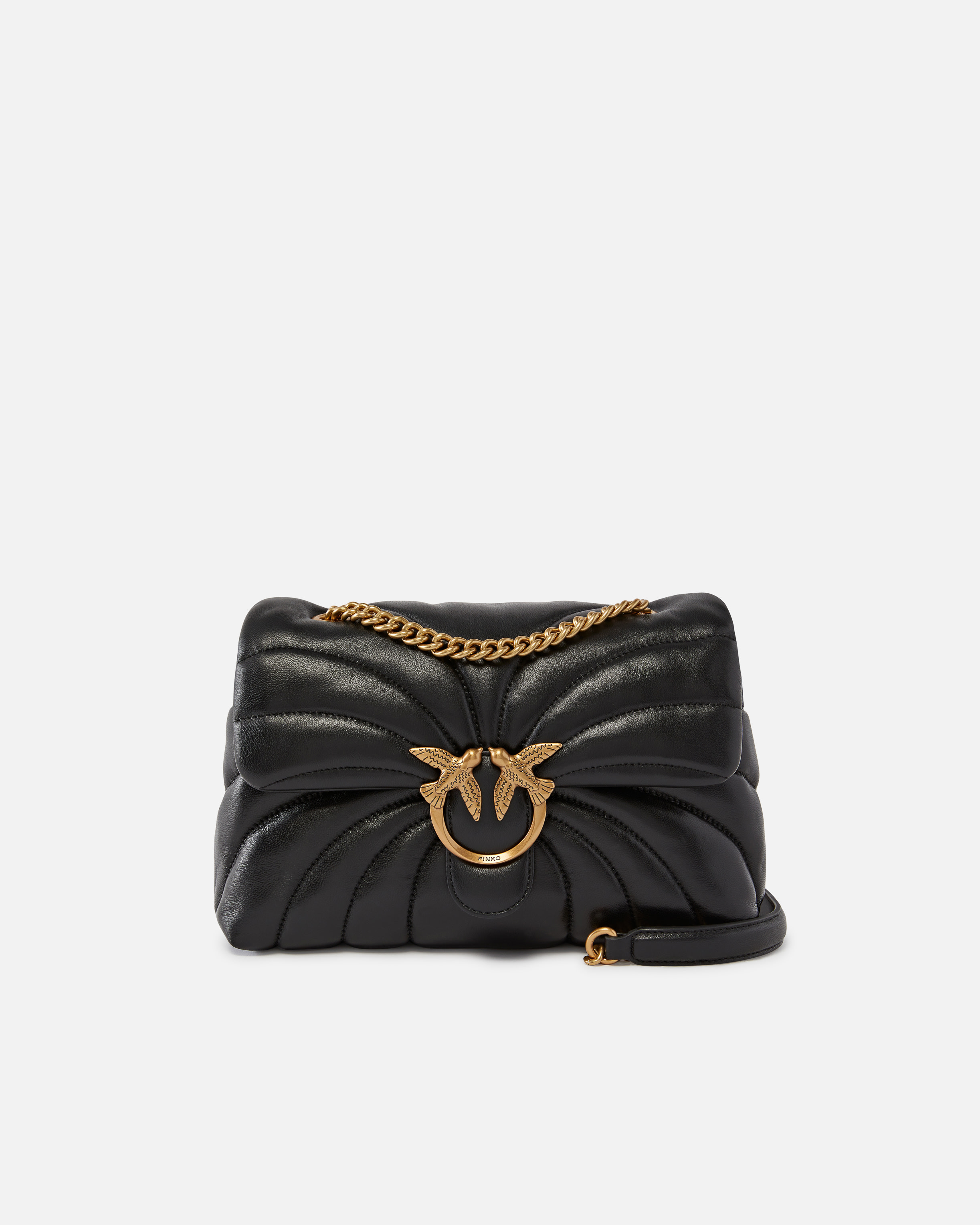 Borsa a tracolla grande Classic Love Bag Puff realizzata in morbida nappa trapuntata con motivo Butterfly a farfalla. La chiusura della borsa è completata dalla fibbia in metallo, galvanica antique gold, con logo uccellini Love Birds Diamond Cut, mentre l'interno, foderato in tessuto effetto scamosciato, include tasca a parete e tramezza chiusa con zip. La tracolla scorrevole combina la classica catena metallica al pratico spallaccio in nappa, e può essere doppiato per indossare la borsa a spalla. Attiva la tua borsa PINKO: verifica l'autenticità del tuo prodotto e accedi all'esperienza personalizzata avvicinando il tuo smartphone al ricamo Love Birds che trovi sul retro della borsa!