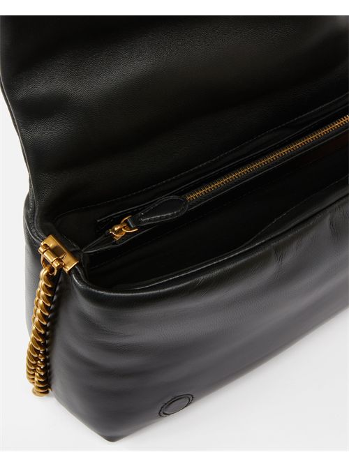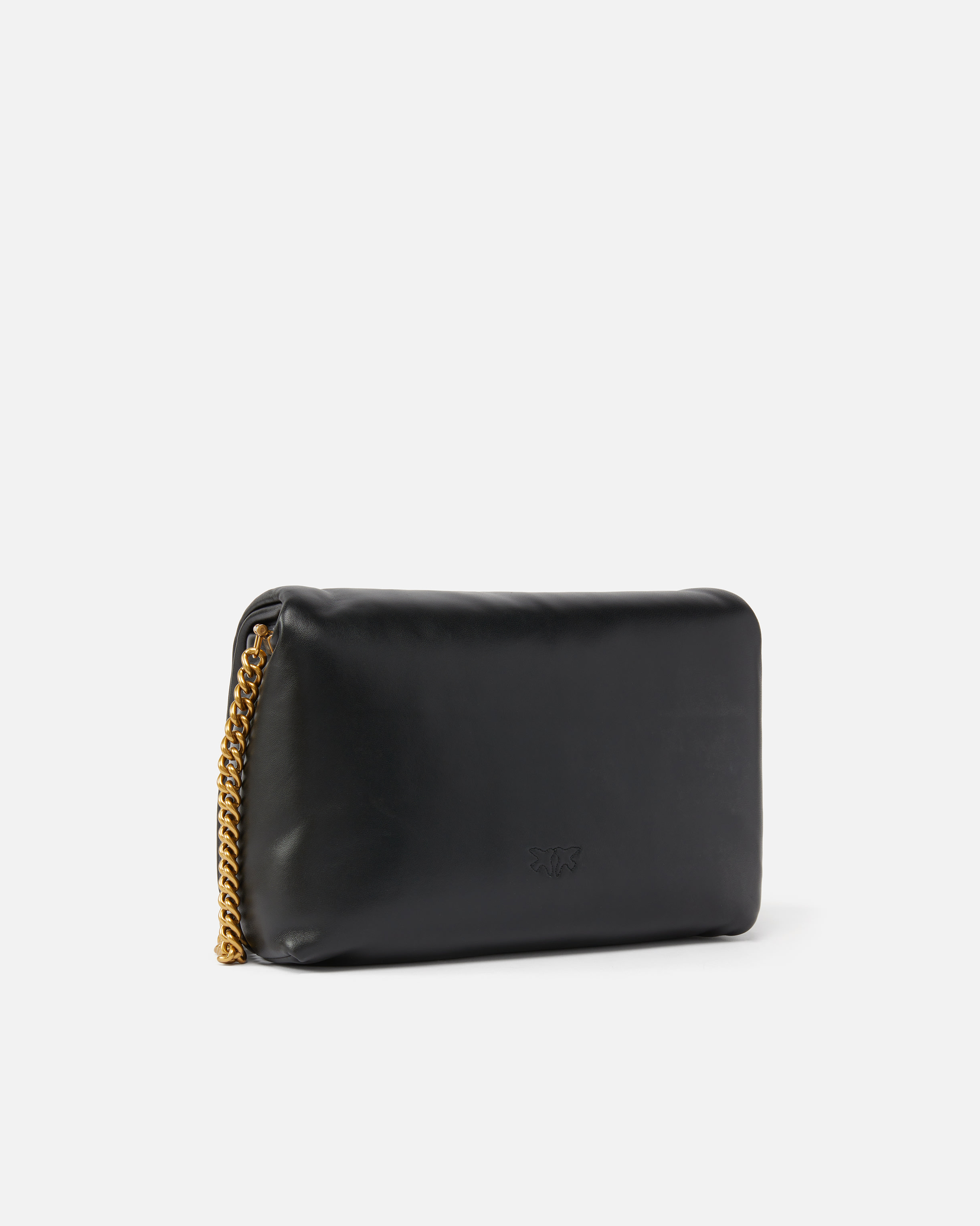 Classic Love Bag Click Puff in morbida nappa. La chiusura automatica nascosta è completata dall'iconica fibbia in metallo Love Birds Diamond Cut con effetto cut-out, ricoperta nella stessa nappa della borsa. L'interno è foderato in microfibra scamosciata e comprende tramezza chiusa con zip e tasca a parete. La tracolla combina la classica catena metallica rotonda al pratico spallaccio regolabile in pelle. Attiva la tua borsa PINKO: verifica l'autenticità del tuo prodotto e accedi all'esperienza personalizzata avvicinando il tuo smartphone al ricamo Love Birds che trovi sul retro della borsa!