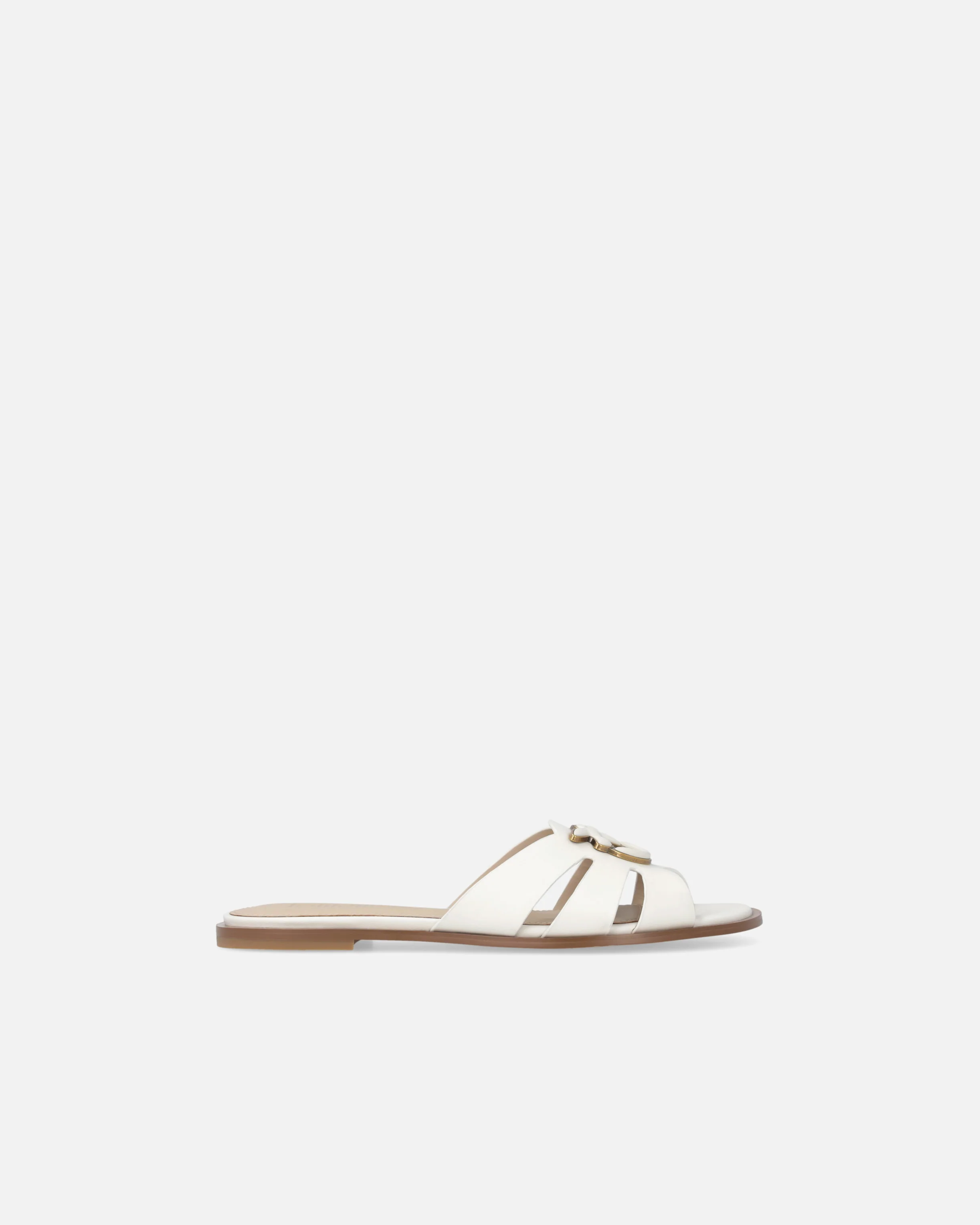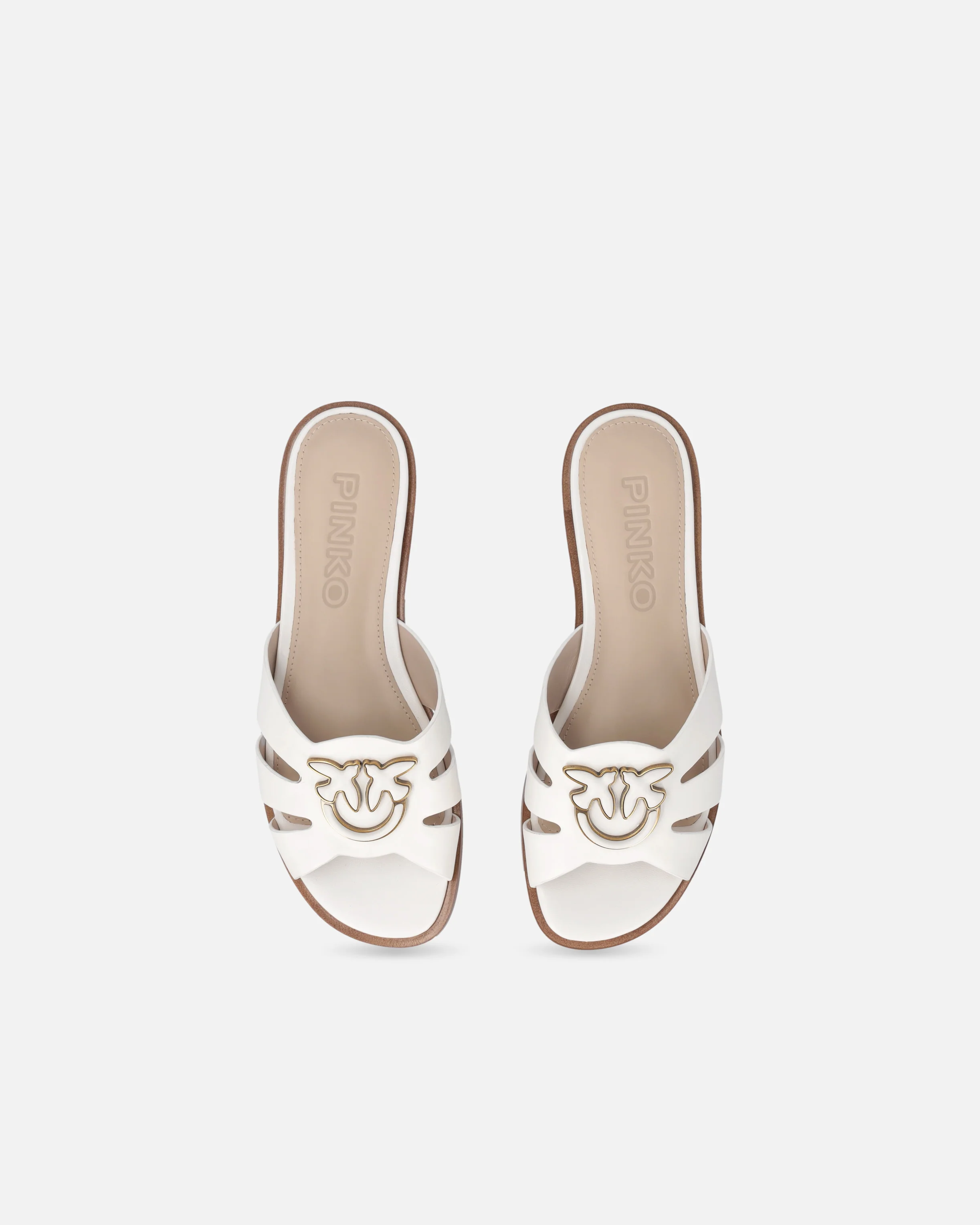 Ciabattine in morbida pelle tinta unita caratterizzate da cut-out laterali e personalizzate dall'iconico logo Love Birds con profilo in metallo e interno in rilievo. Dotate di soletta in pelle per un indosso ancora più confortevole e di una suola extrapiatta in gomma che rende sicuro ogni passo, queste slipper dall'estetica urban e contemporanea ti accompagneranno con grinta durante le giornate in città e non solo.