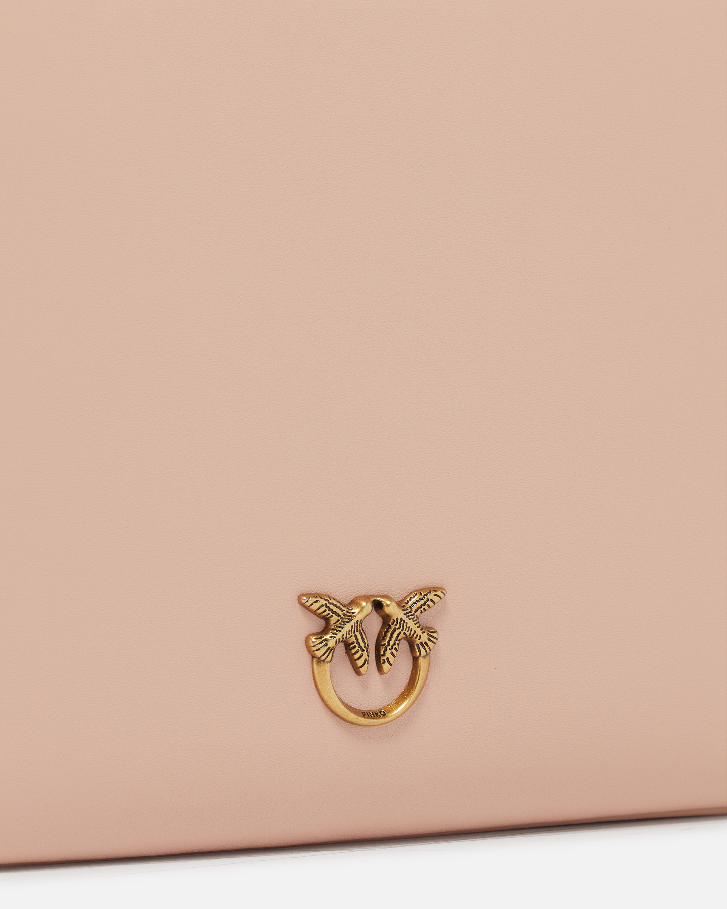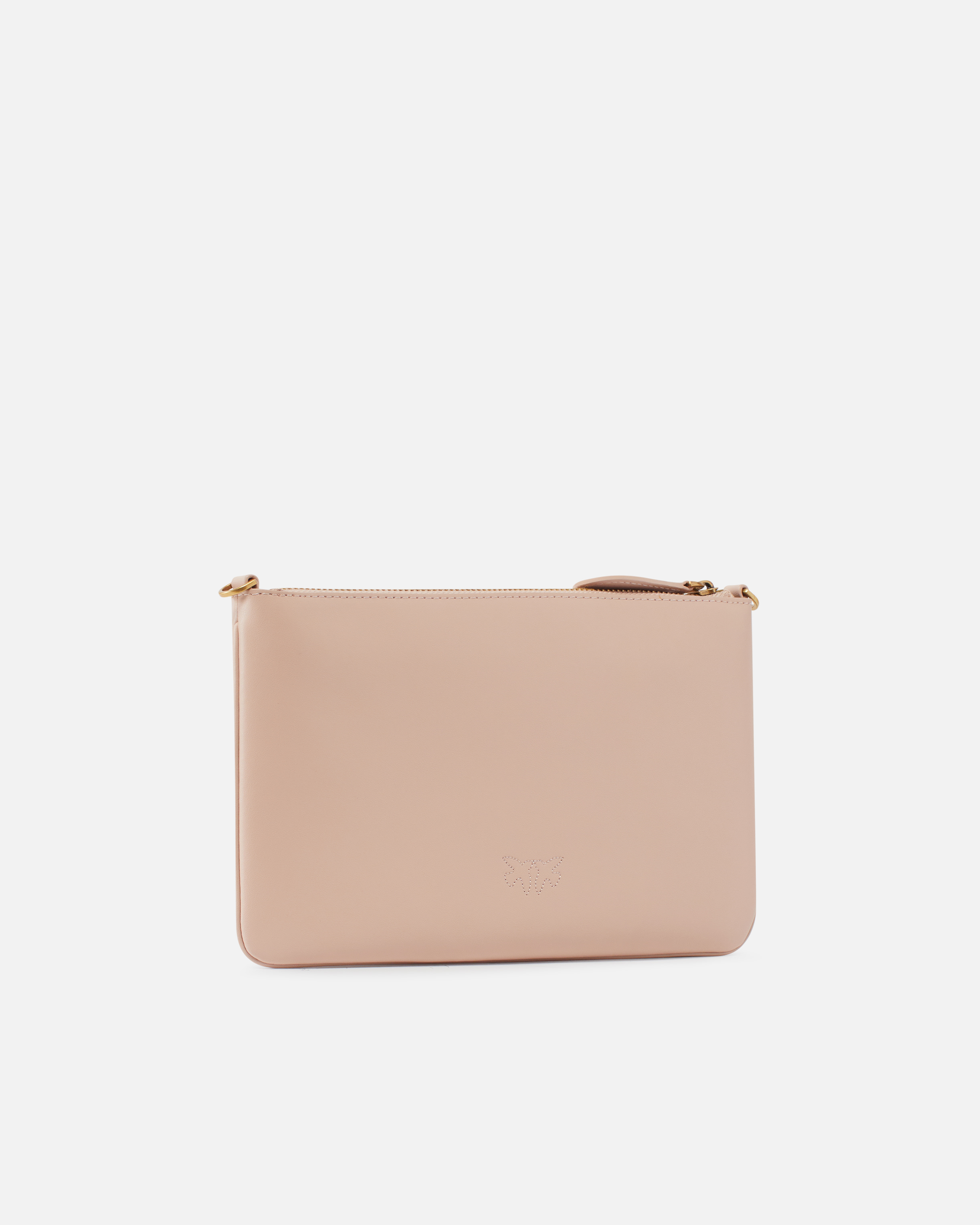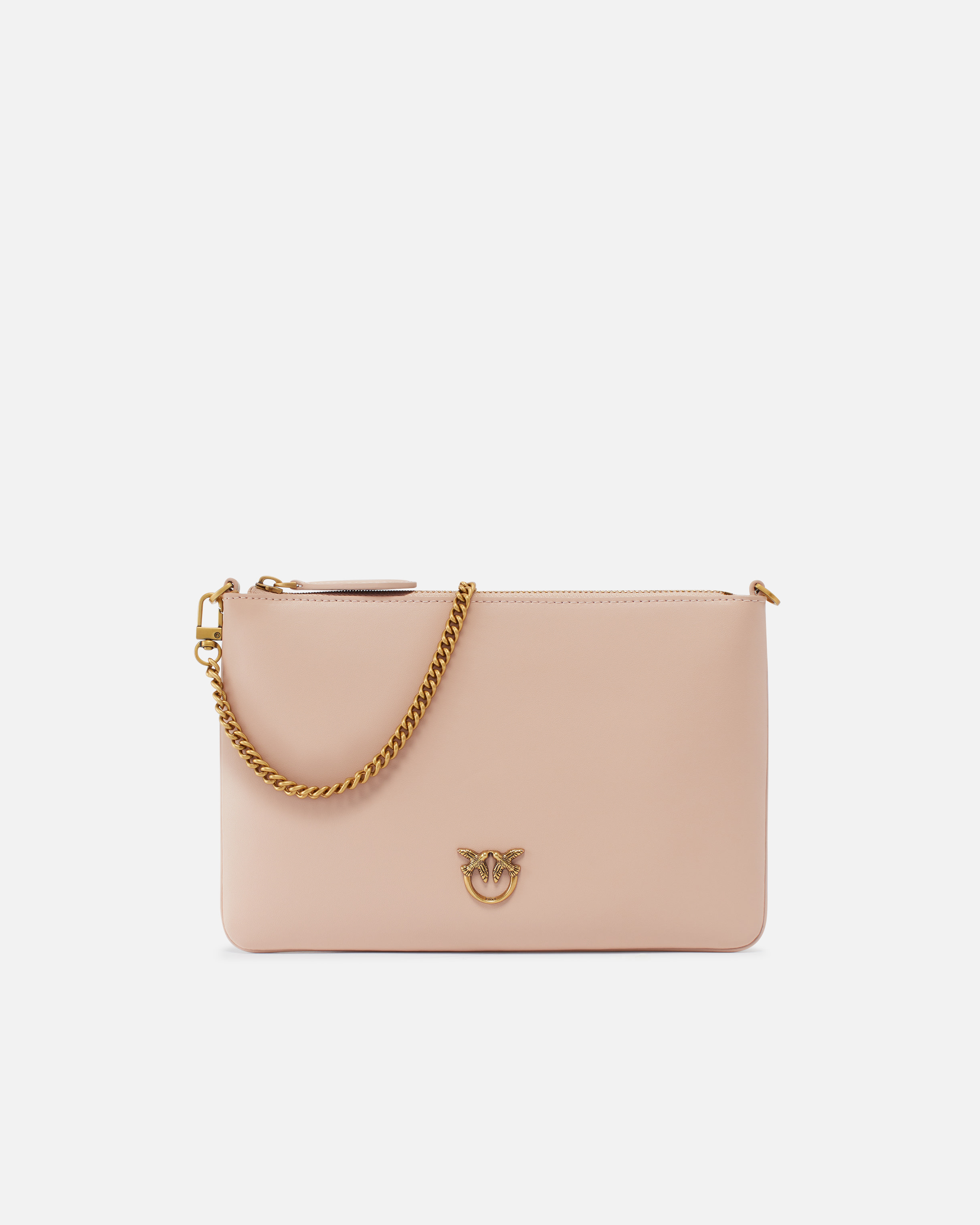 Borsa a tracolla flat in morbida pelle mano seta. Personalizzazione con placchetta Love Birds Diamond Cut. Interno foderato in polycotton e tracolla rimovibile a catena sottile. Chiusura con zip.