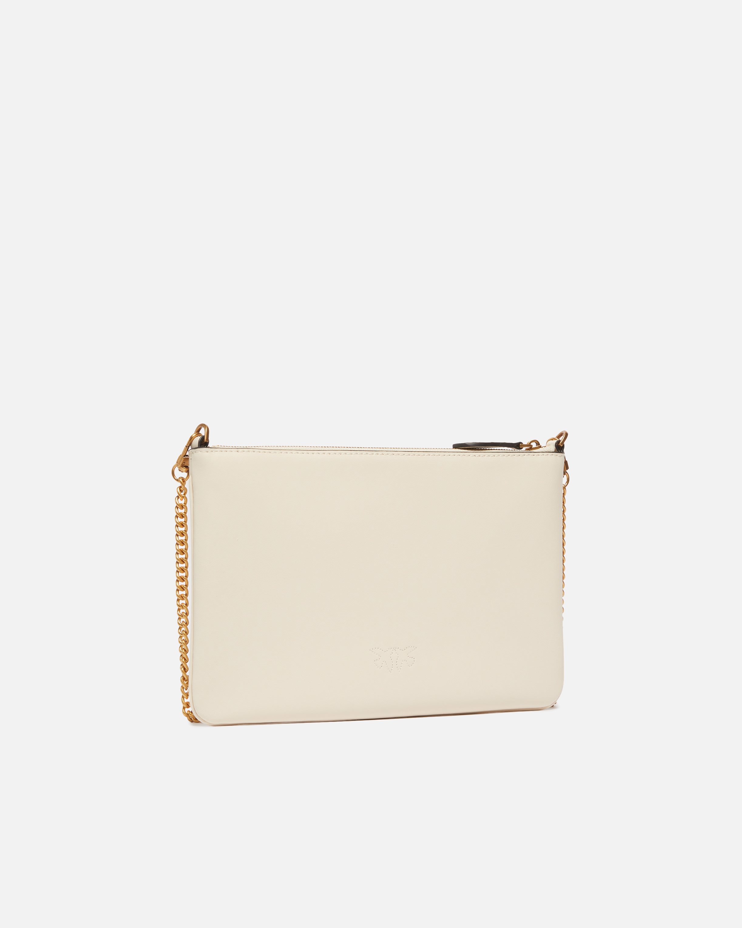 Borsa a tracolla flat in morbida pelle mano seta. Personalizzazione con placchetta Love Birds Diamond Cut. Interno foderato in polycotton e tracolla rimovibile a catena sottile. Chiusura con zip.