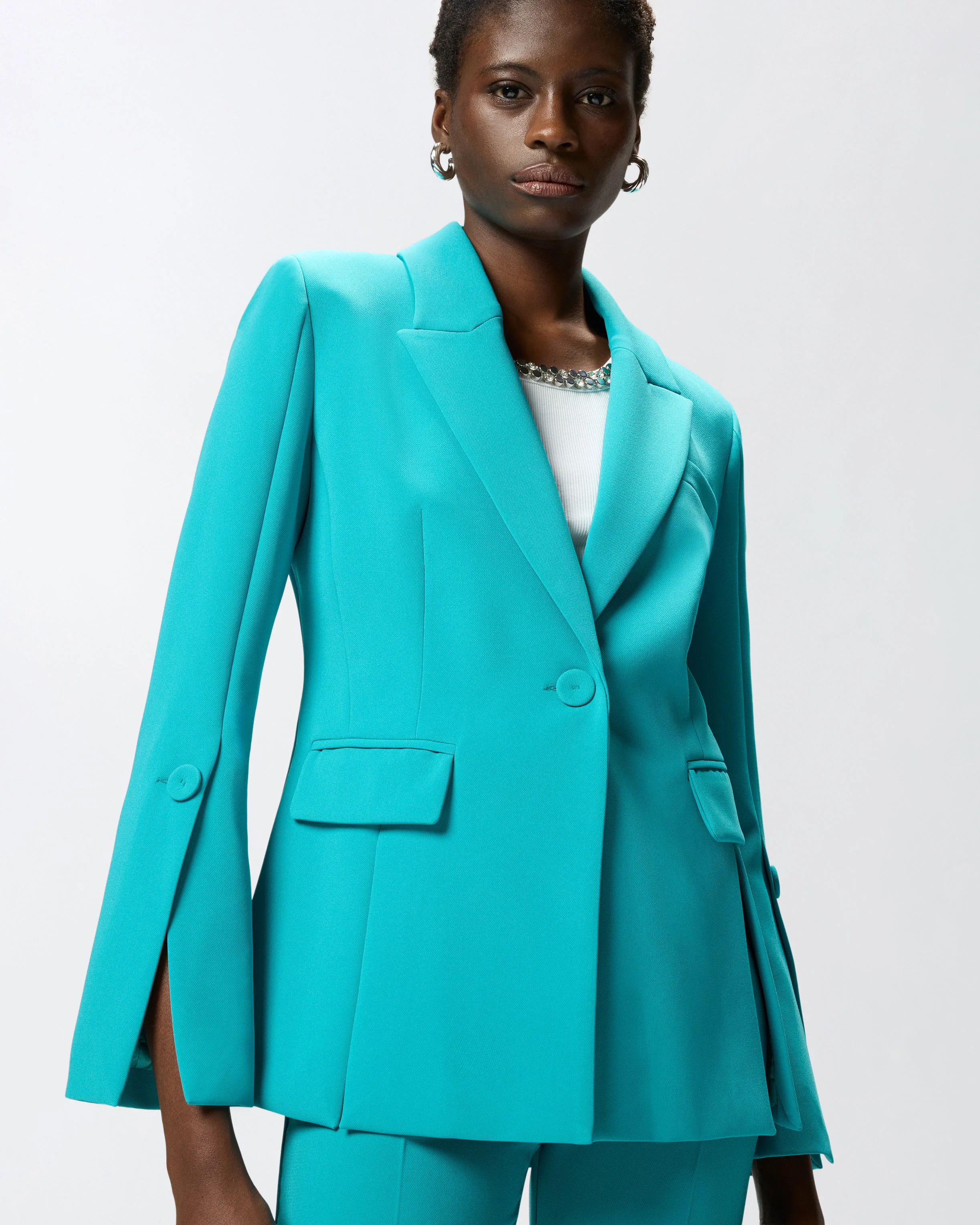 Giacca foderata in leggera georgette e realizzata in tela tecnica, un tessuto comodo e traspirante per un mix irresistibile di funzionalità ed eleganza contemporanea. Il capo, dotato di revers a lancia, due tasche frontali con patta e un taschino a filetto sul petto, non rinuncia alla preziosità, data dal bottone gioiello che caratterizza la chiusura monopetto. Il modello si distingue inoltre per i raffinati spacchi, presenti sotto le tasche, sul retro, e a fondo manica, dove sono accompagnati da un bottone rivestito. Indossa questa giacca con i pantaloni coordinati per creare un total look adatto alle occasioni formali, oppure abbinala a capi più casual per un outfit dall'animo urban-chic. - CARCIOFO GIACCA