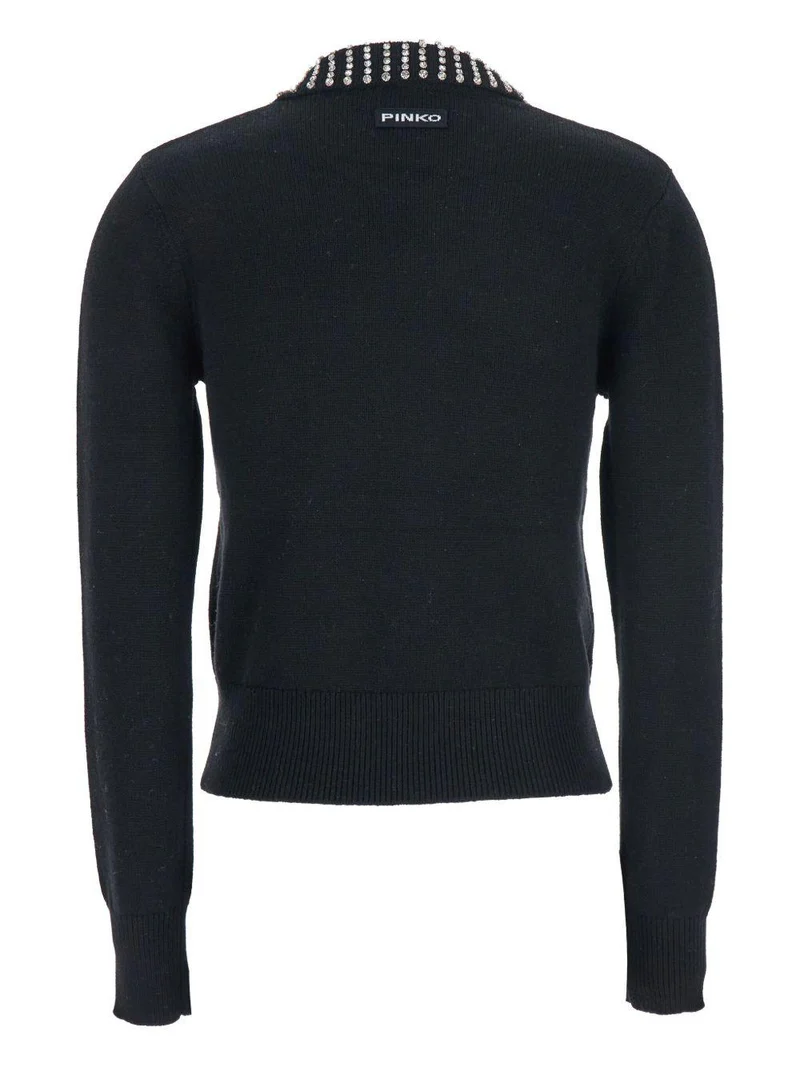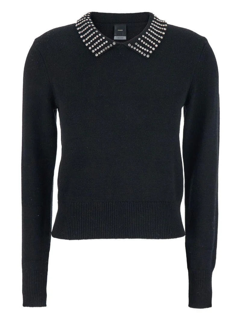 Maglia con colletto abbellito di Pinko è proposto in colore nero, con colletto decorato, maniche lunghe e orlo a coste.