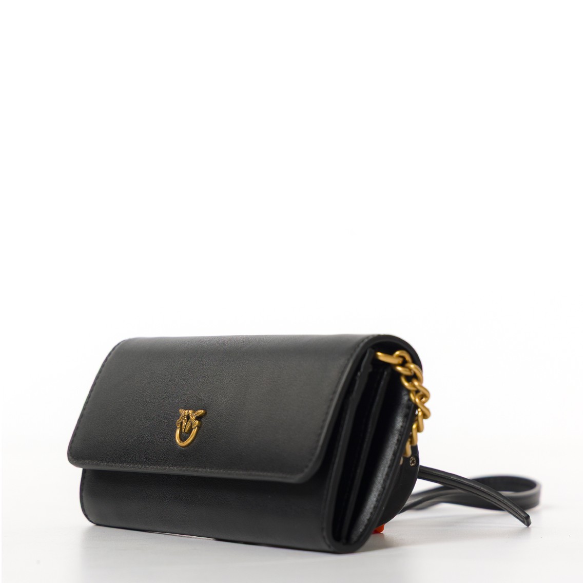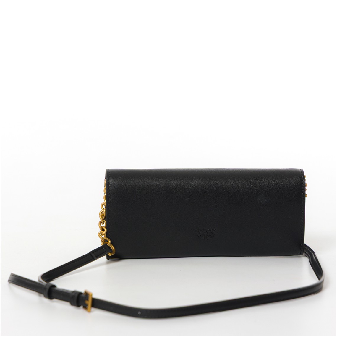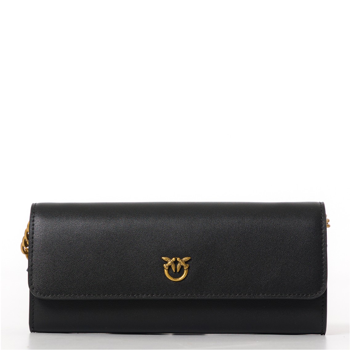 Portafoglio dalla forma rettangolare allungata realizzato in pelle mano seta e dotato di fodera in cotone e chiusura con zip. Caratterizzato dalla tracolla regolabile e rimovibile in pelle e catena, il modello risulta estremamente versatile e pratico.