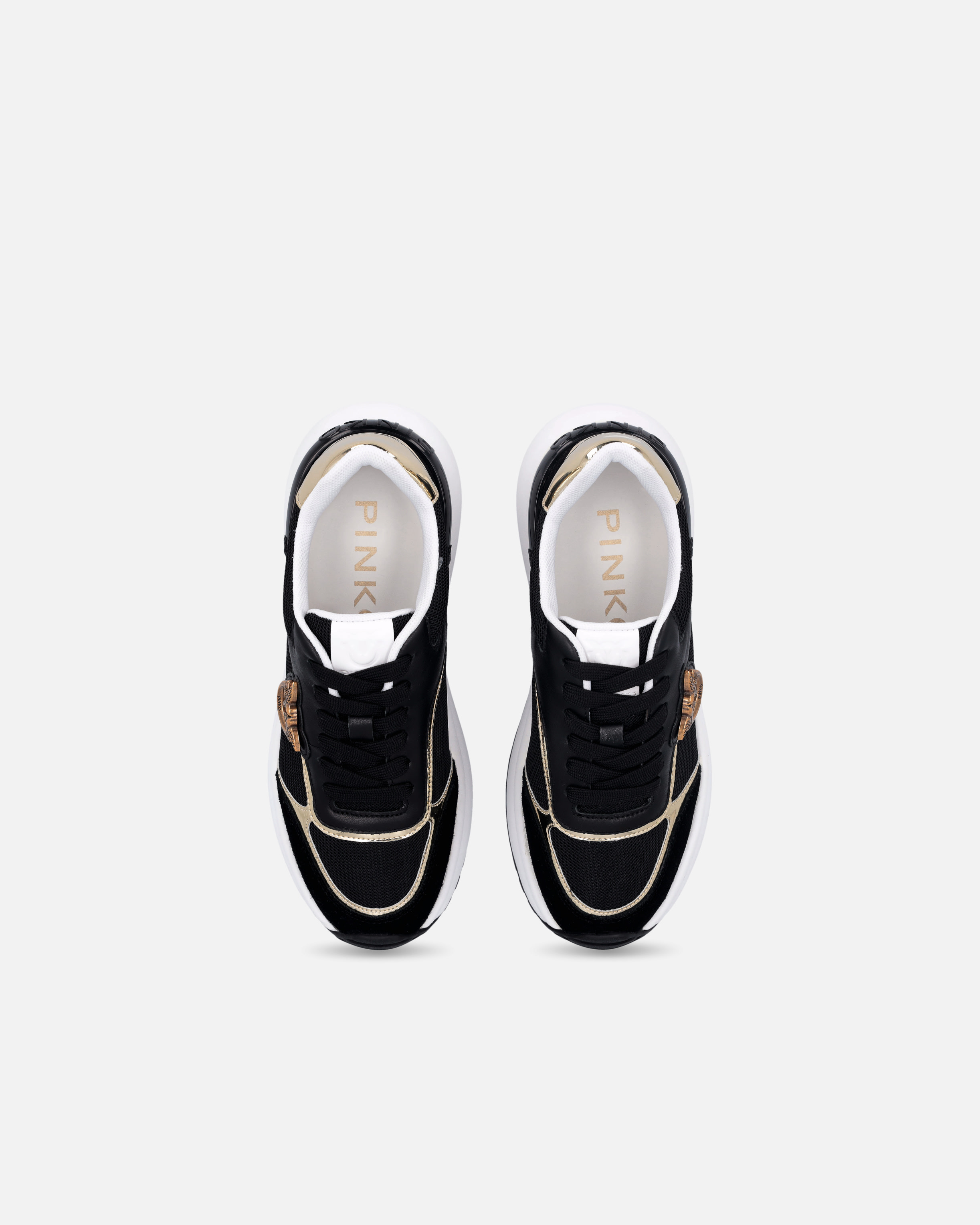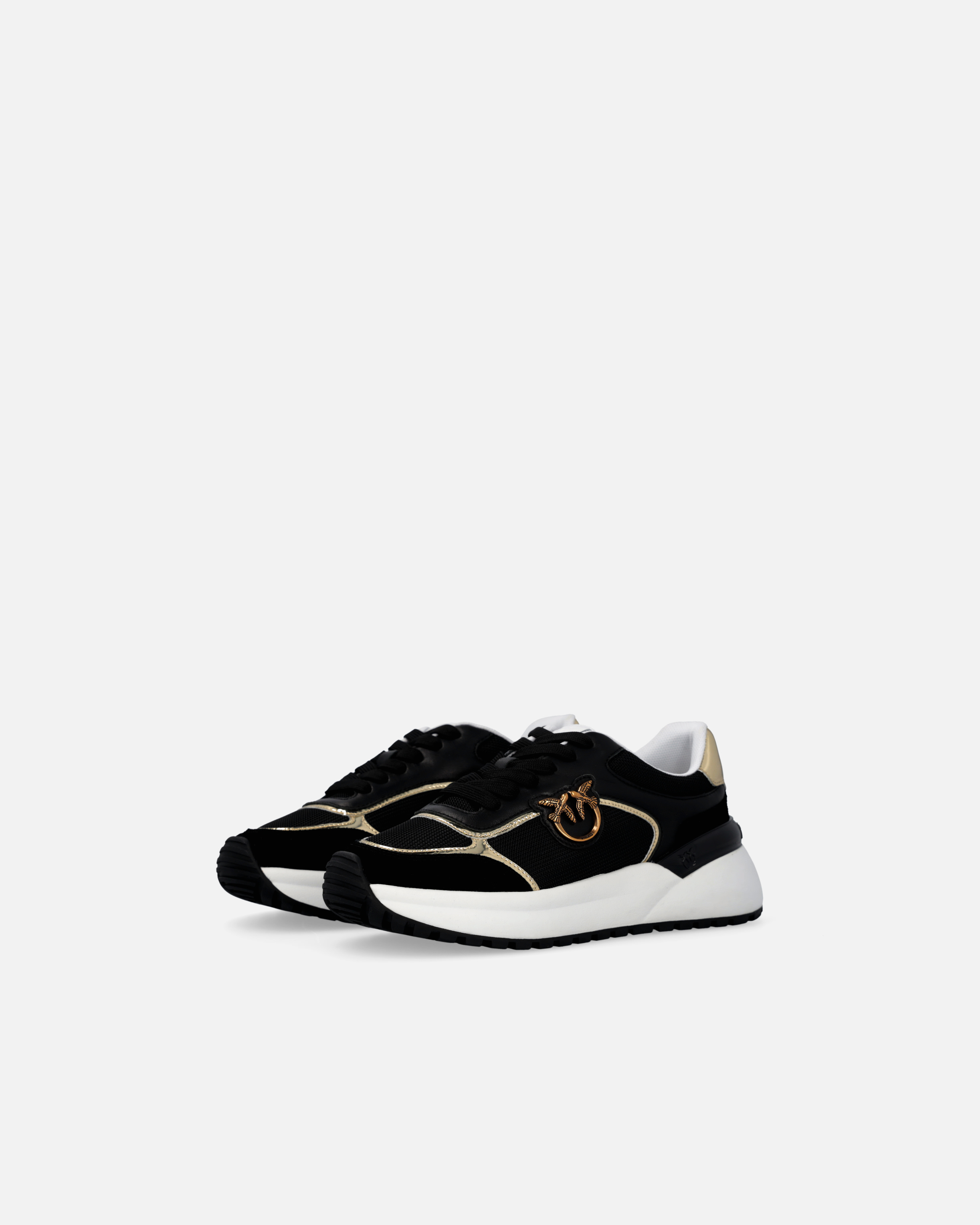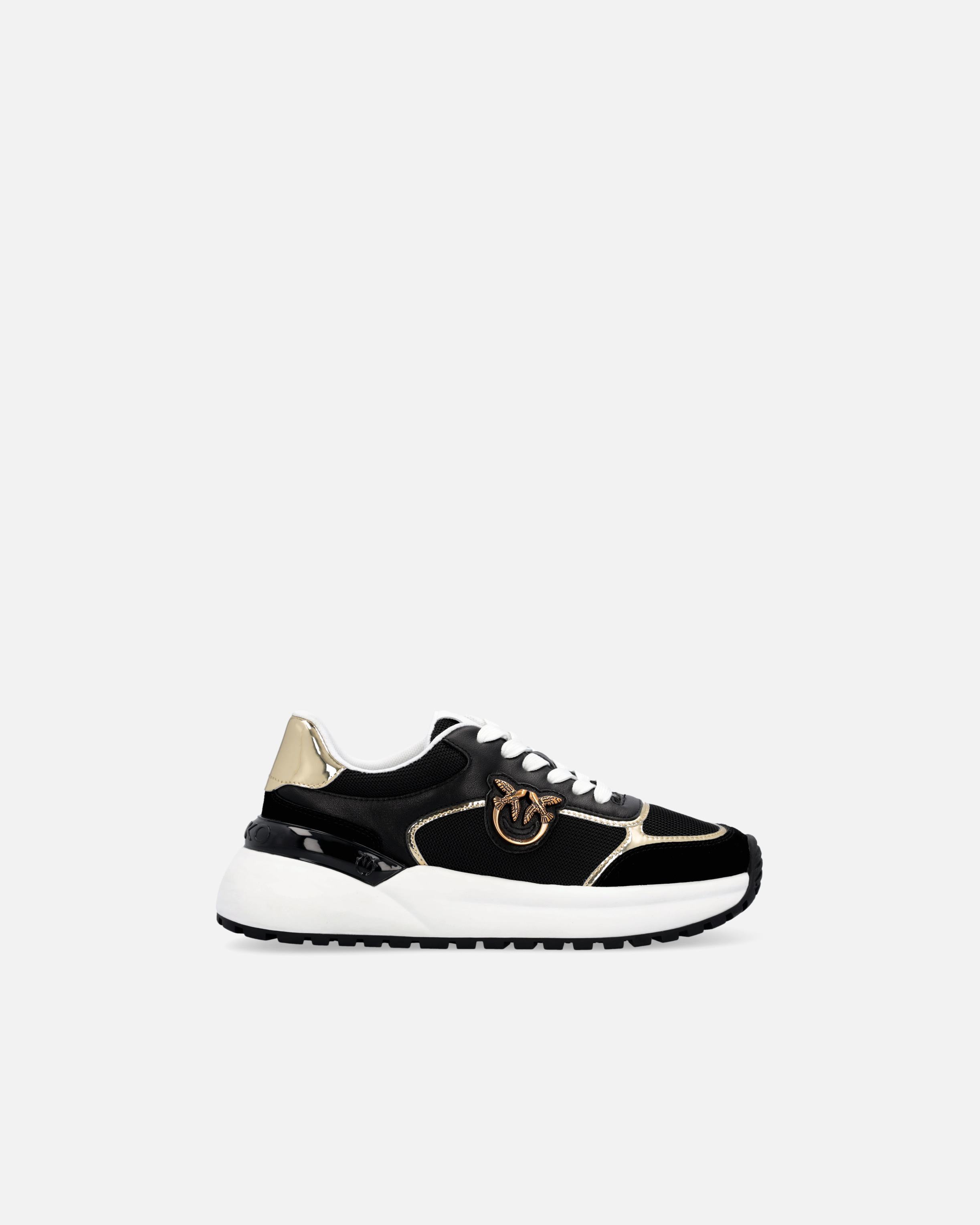Scarpe sneakers con lacci da donna in materiale effetto pelle con dettagli in mesh e laminati effetto specchio, personalizzate con logo Love Birds in metallo applicato sul lato esterno. Le scarpe sono foderate in tessuto e la soletta interna in pelle garantisce una calzata comoda per tutto il giorno. La suola delle scarpe da ginnastica, sagomata e realizzata in materiale gommato, è completato da spoiler in TPU lucido personalizzato con logo uccellini.