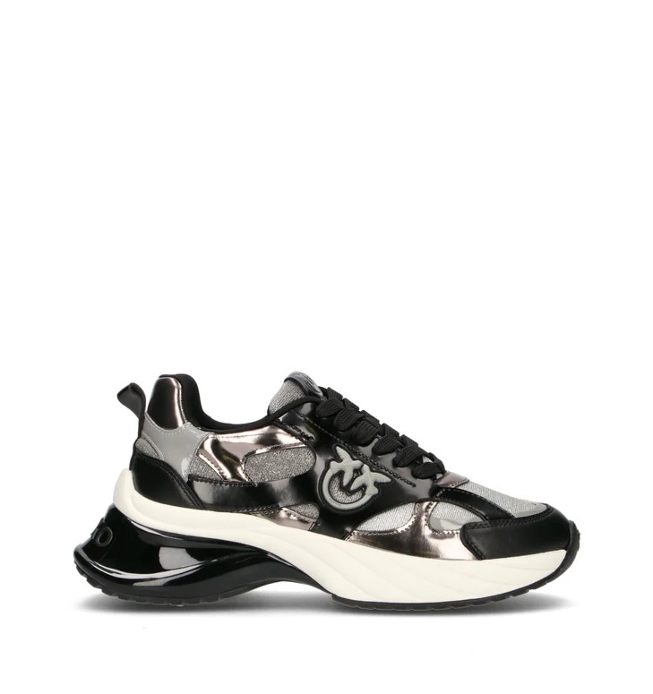PINKO Sneaker donna nera in pelle naturale e tessuto. Design contemporaneo e dettagli curati definiscono un modello dal carattere dinamico e versatile. Pensata per accompagnare ogni momento della giornata con stile, si adatta perfettamente a look casual e metropolitani, aggiungendo un tocco di personalità distintiva a ogni passo.