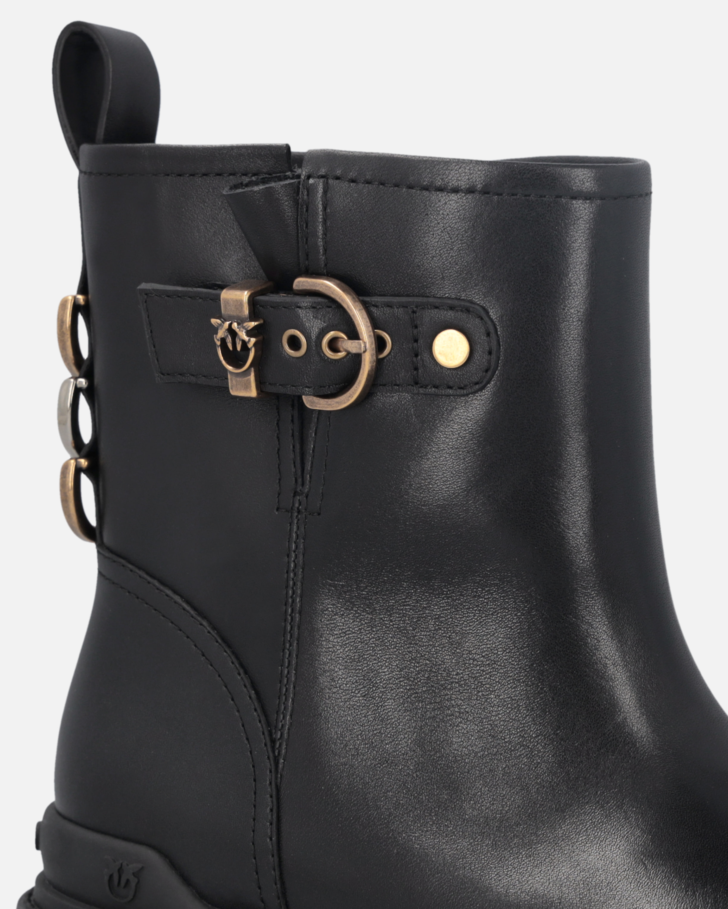 Stivaletto in pelle liscia con gambale alto 17 cm e suola platform da 5,5 cm. Il modello è dotato di soffietto laterale per migliorare la calzata, che si chiude tramite cinturino regolabile con fibbia e passante metallico con logo Love Birds. Questo stivaletto, grintoso ed essenziale, è arricchito da elementi metallici color oro e argento sul retro che ne esaltano la linea, rendendo la scarpa perfetta per chi cerca un equilibrio tra grinta ed eleganza. Sappiamo bene che sono i dettagli a fare la differenza: scegli questo modello per aggiungere un tocco di unicità ai tuoi look casual.