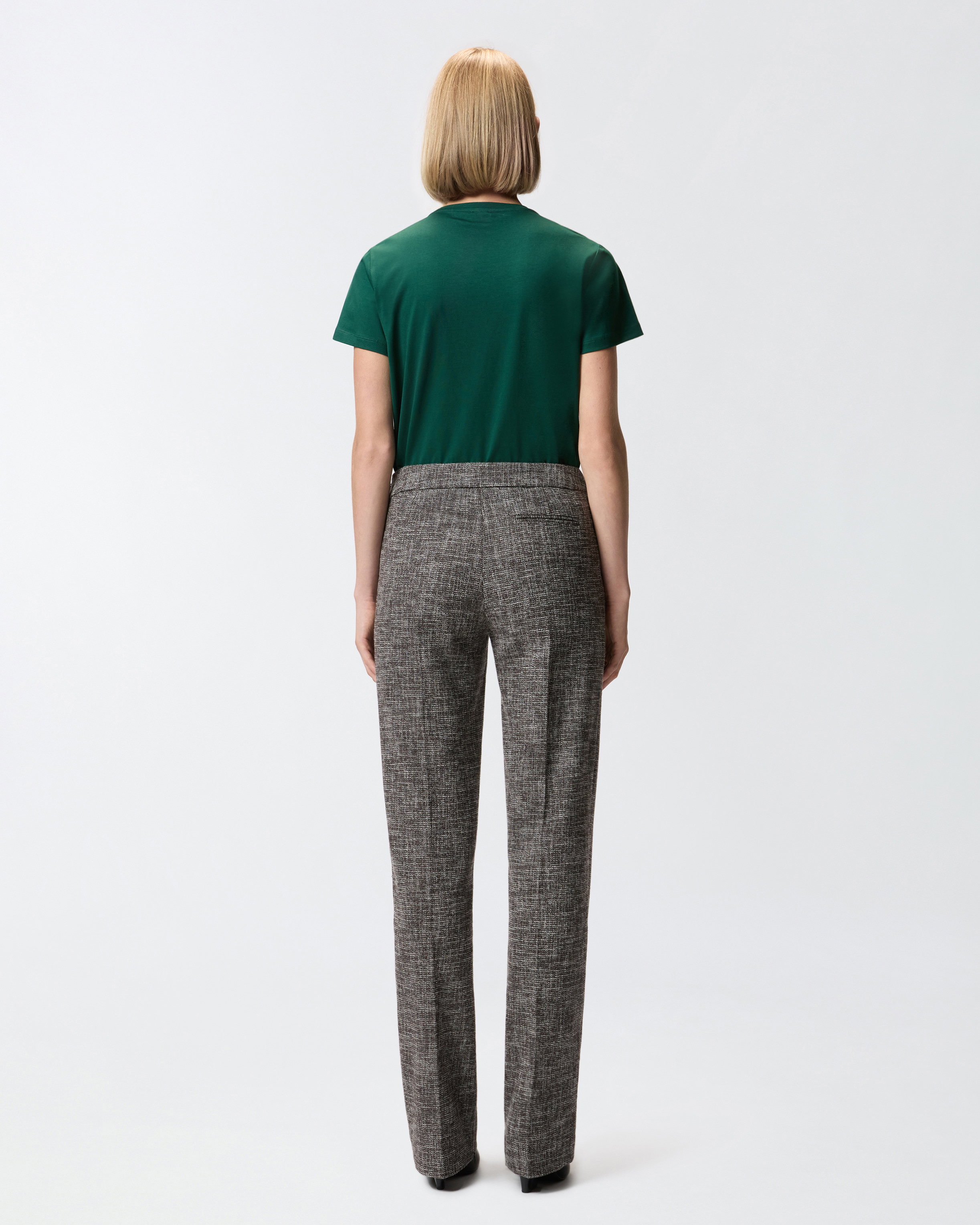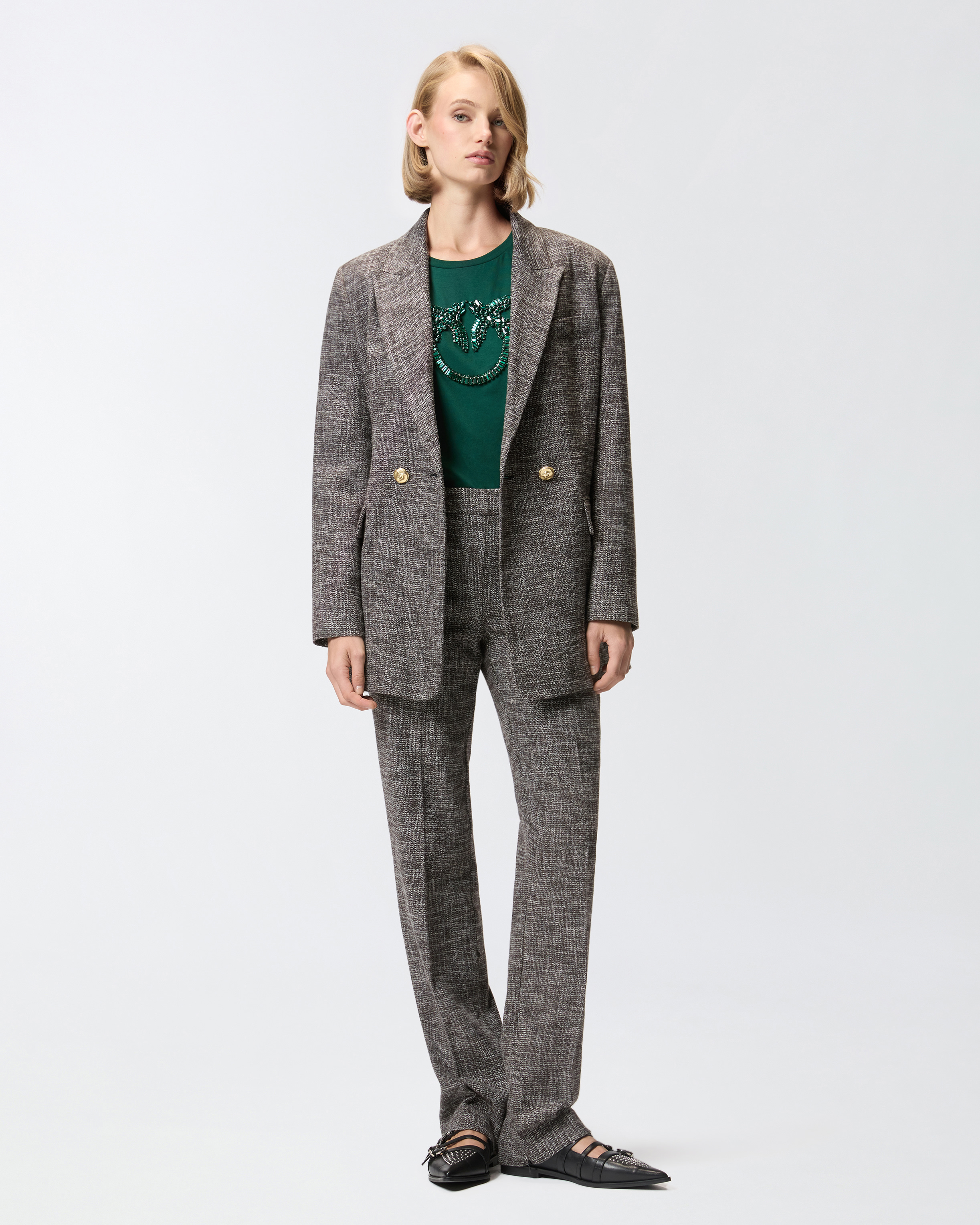 T-shirt a maniche corte in jersey di cotone. Il capo è impreziosito dal logo Love Birds decorato da un ricamo realizzato a mano composto di perle, catenina di cristalli con taglio baguette e strass di diversa forma fissati con apposite alette laterali per renderli più saldi. Questa maglietta è perfetta da indossare in qualunque occasione, dalle più formali alle più sporty, per un tocco femminile e iconico.