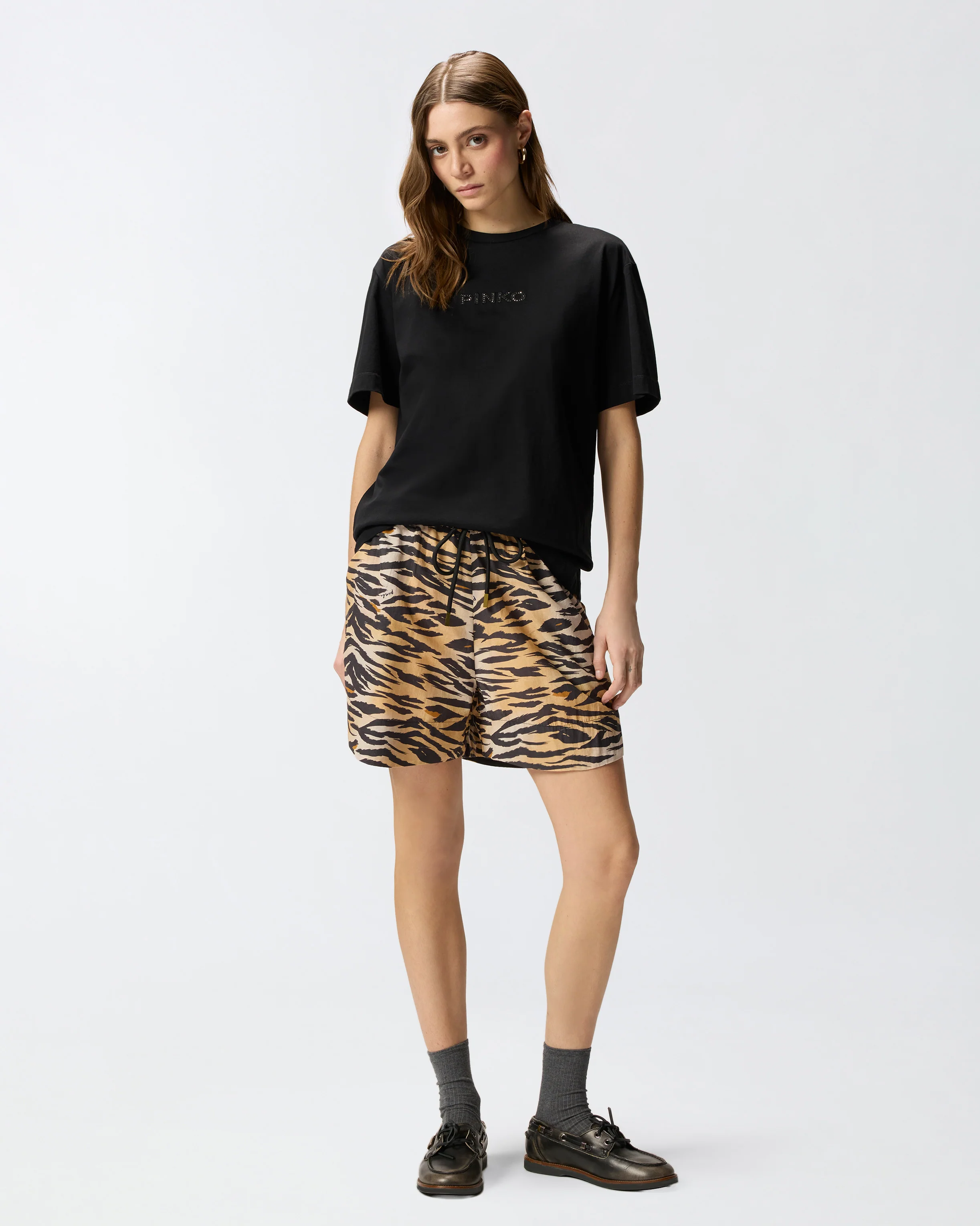 T-shirt girocollo a maniche corte realizzata in jersey di puro cotone. Il modello è caratterizzato dal logo lettering PINKO impreziosito da strass sul petto, e da un maxi lettering More Strass Less Stress, sempre composto di strass, sul retro. Un capo imprescindibile del guardaroba femminile rivisitato in chiave PINKO, per elevare anche i tuoi look di tutti i giorni. - STREPITOSO T-SHIRT