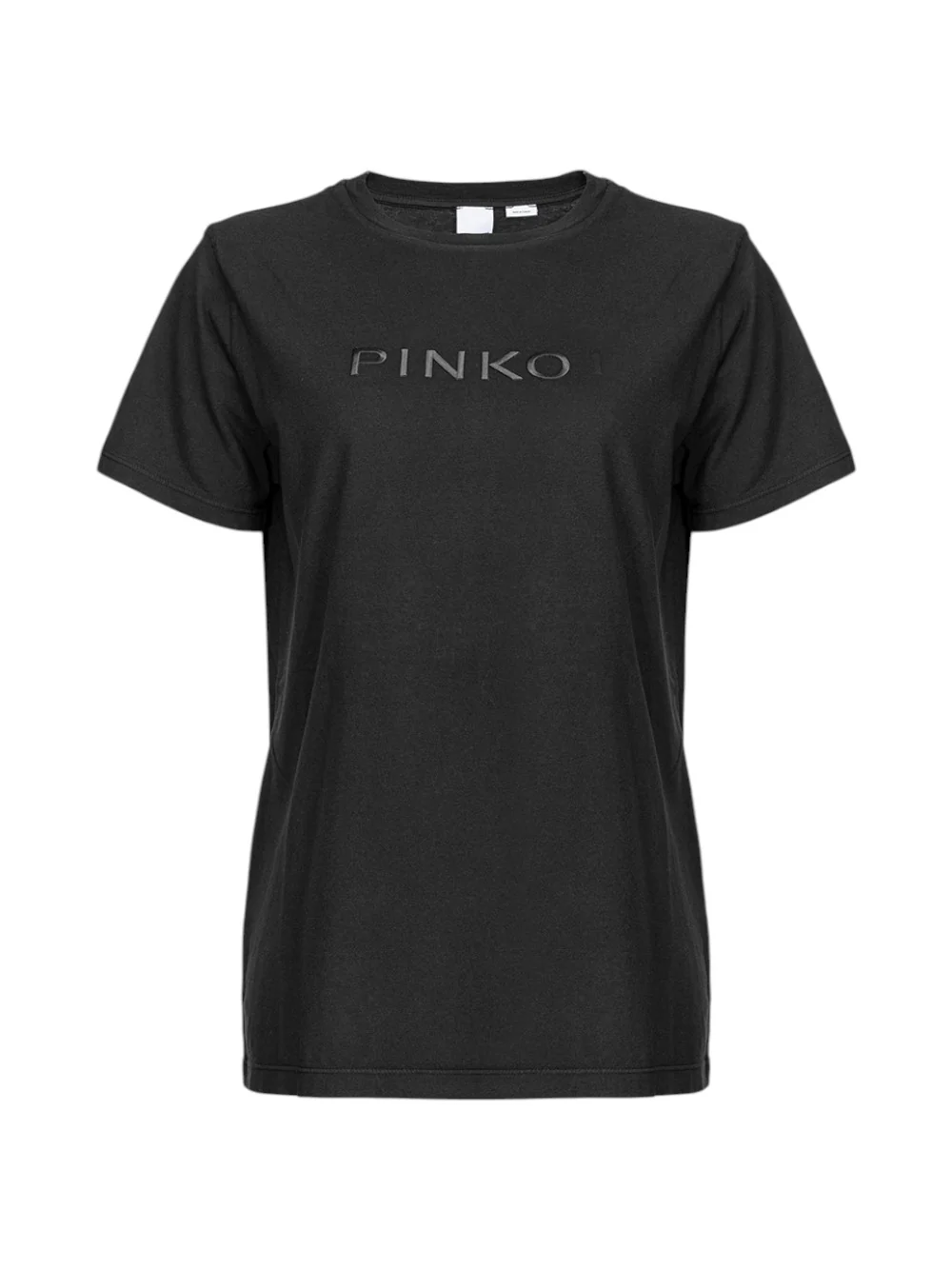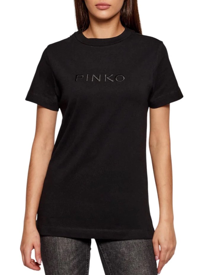 T-shirt a maniche corte dal taglio leggermente slim in jersey di cotone con ricamo logo PINKO davanti. Eleva l'eleganza e la femminilità di qualsiasi outfit grazie a questo top, che è il sottogiacca perfetto abbinato a pantaloni sartoriali, ma anche a un paio di jeans speciali.