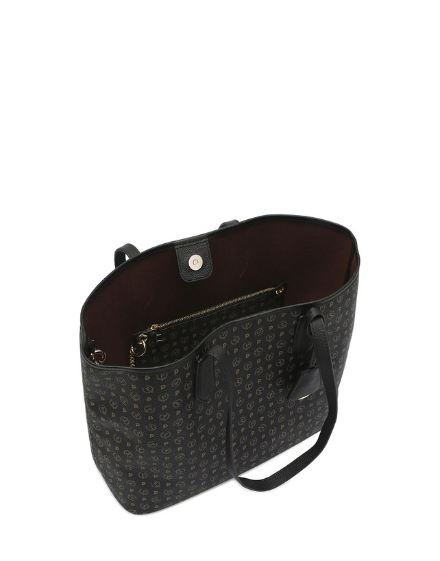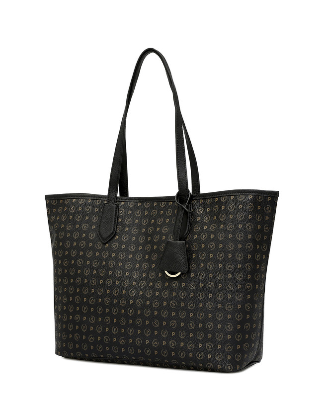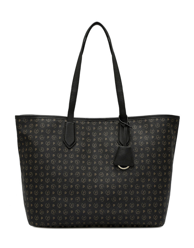 Borsa shopping collezione Heritage Logo Classic. L'iconico monogramma all over dona un allure elegante e senza tempo. Manici in pelle per portabilità a mano e a spalla. Piccola pouch interna amovibile e portachiavi a clochette.