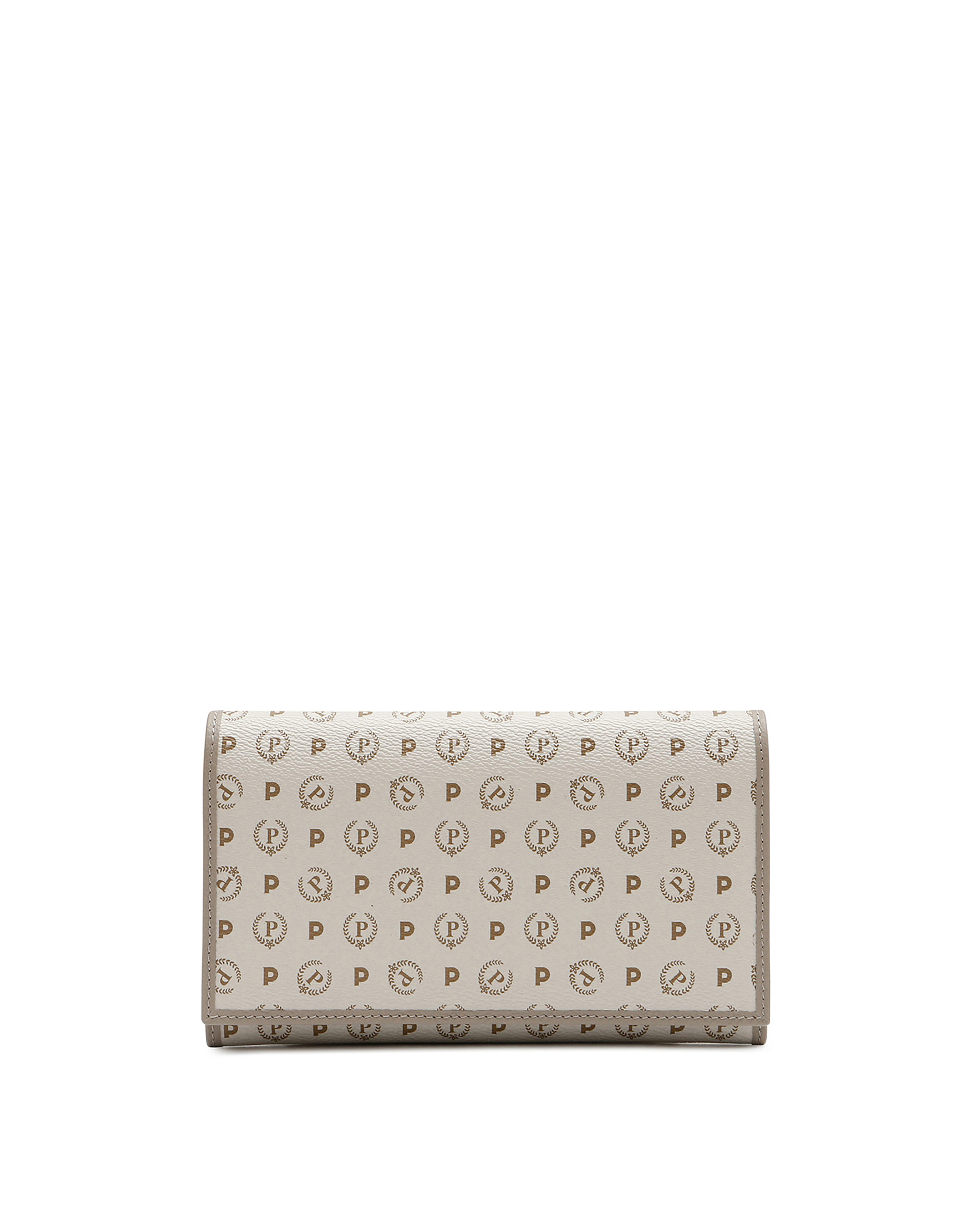 Portafoglio con patta collezione Heritage Logo classic. L'iconico monogramma all over dona un allure elegante e senza tempo. Tre scomparti, vano portamonete con zip e 16 vani porta carte