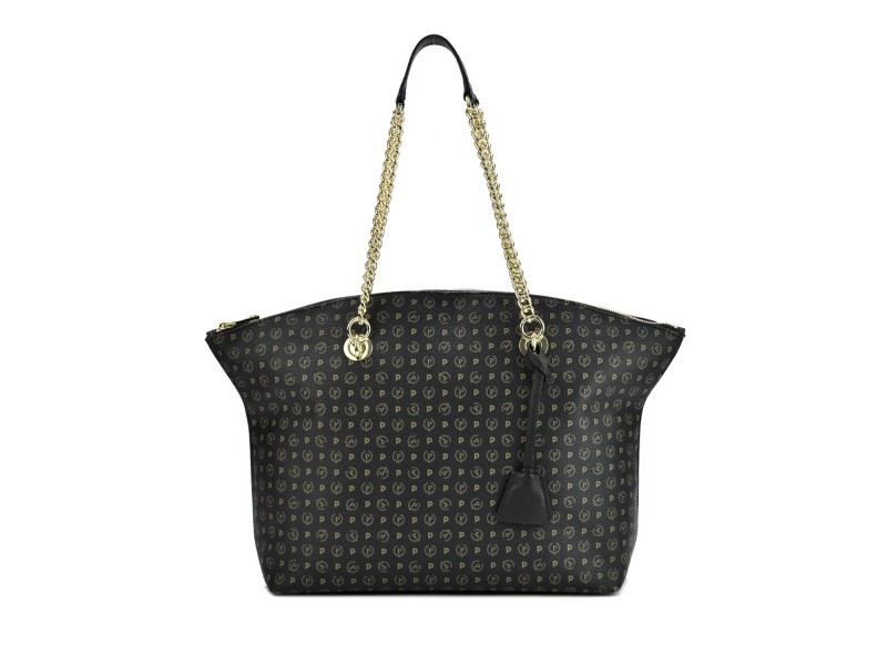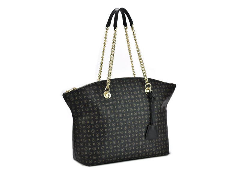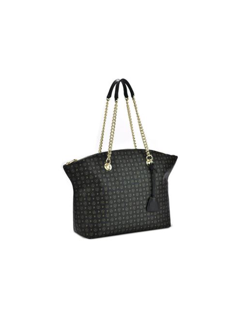 Pratica borsa Tote collezione Heritage Logo classic. L'iconico monogramma all over dona un allure elegante e senza tempo. I manici, in pelle e in catena dorata, sono intercambiabili costituendo elemento decorativo e funzionale allo stesso tempo. Portabilità sottospalla. Portachiavi a clochette.