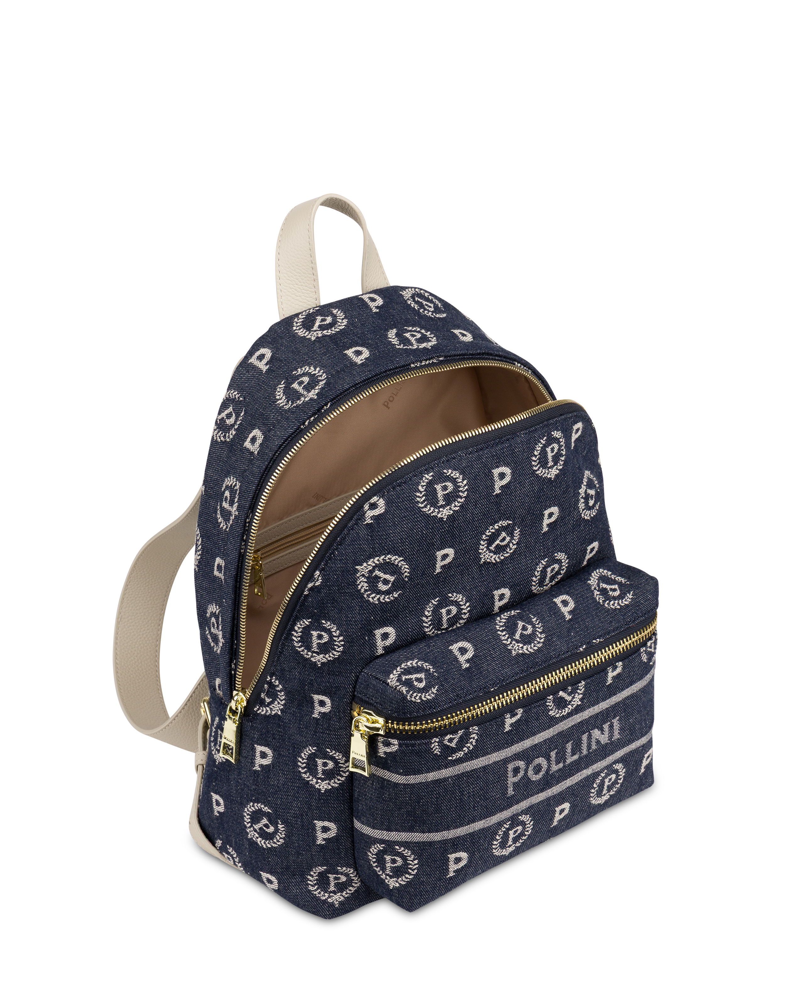 Lo Zaino della linea Heritage Marina realizzato in morbido tessuto Denim Jacquard con la nuova stampa, combina stile e funzionalità. Il monogramma Pollini all over aggiunge un tocco sofisticato, mentre la capiente tasca frontale con zip e gli spallacci regolabili garantiscono praticità e comfort per luso quotidiano.