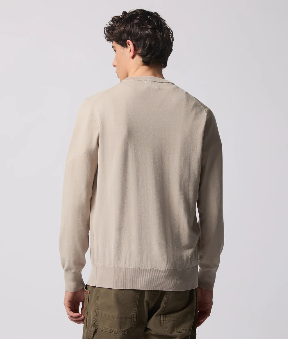 Il Ben Pullover è una maglia girocollo realizzata in 100% cotone high-twisted, una fibra ritorta ad alta torsione che dona al tessuto un tocco lievemente secco e croccante, garantendo al tempo stesso elevata traspirabilità e comfort. La struttura del filato favorisce la circolazione dellaria e rende il capo ideale per le mezze stagioni e per un utilizzo prolungato. Il design è pulito ed essenziale, arricchito dal patch logo sul petto che aggiunge un segno distintivo discreto. Collo, polsini e fondo in maglia a costina assicurano una vestibilità stabile e confortevole. Un pullover versatile pensato per integrarsi facilmente nel guardaroba urbano contemporaneo.