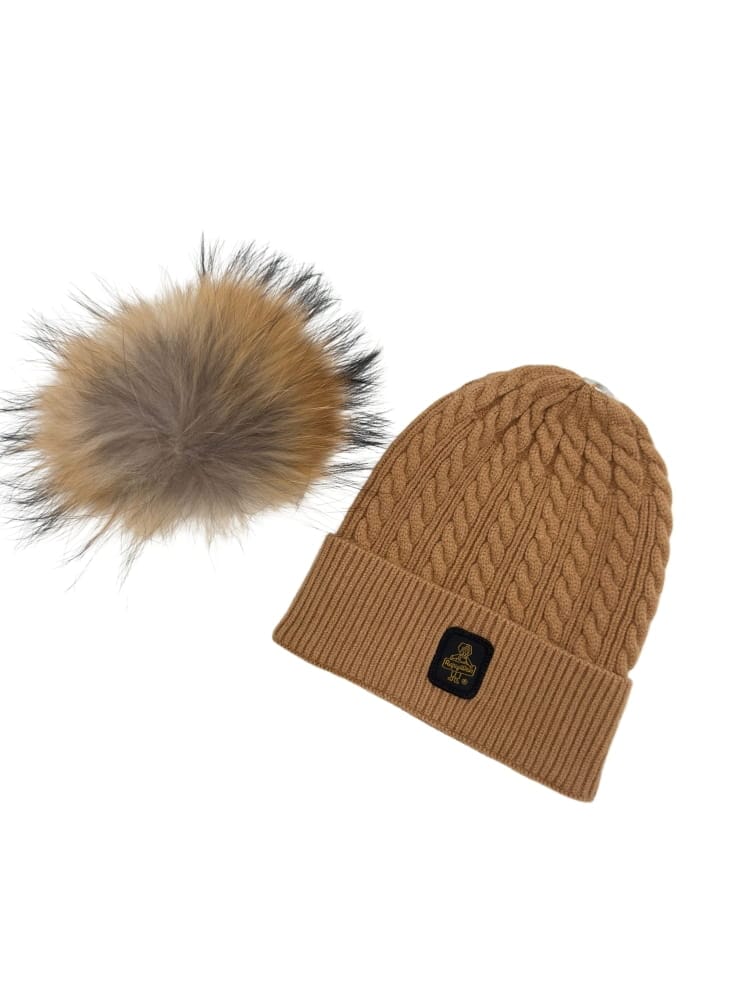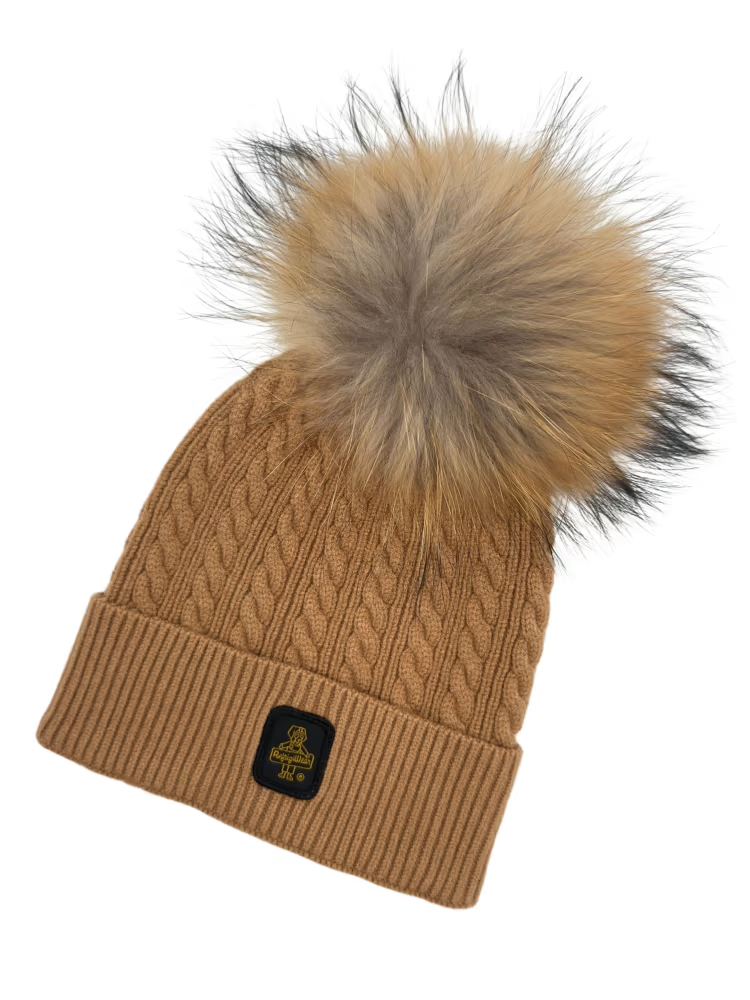 Refrigiwear cappello junior con pon pon in ecopelliccia staccabile cammello