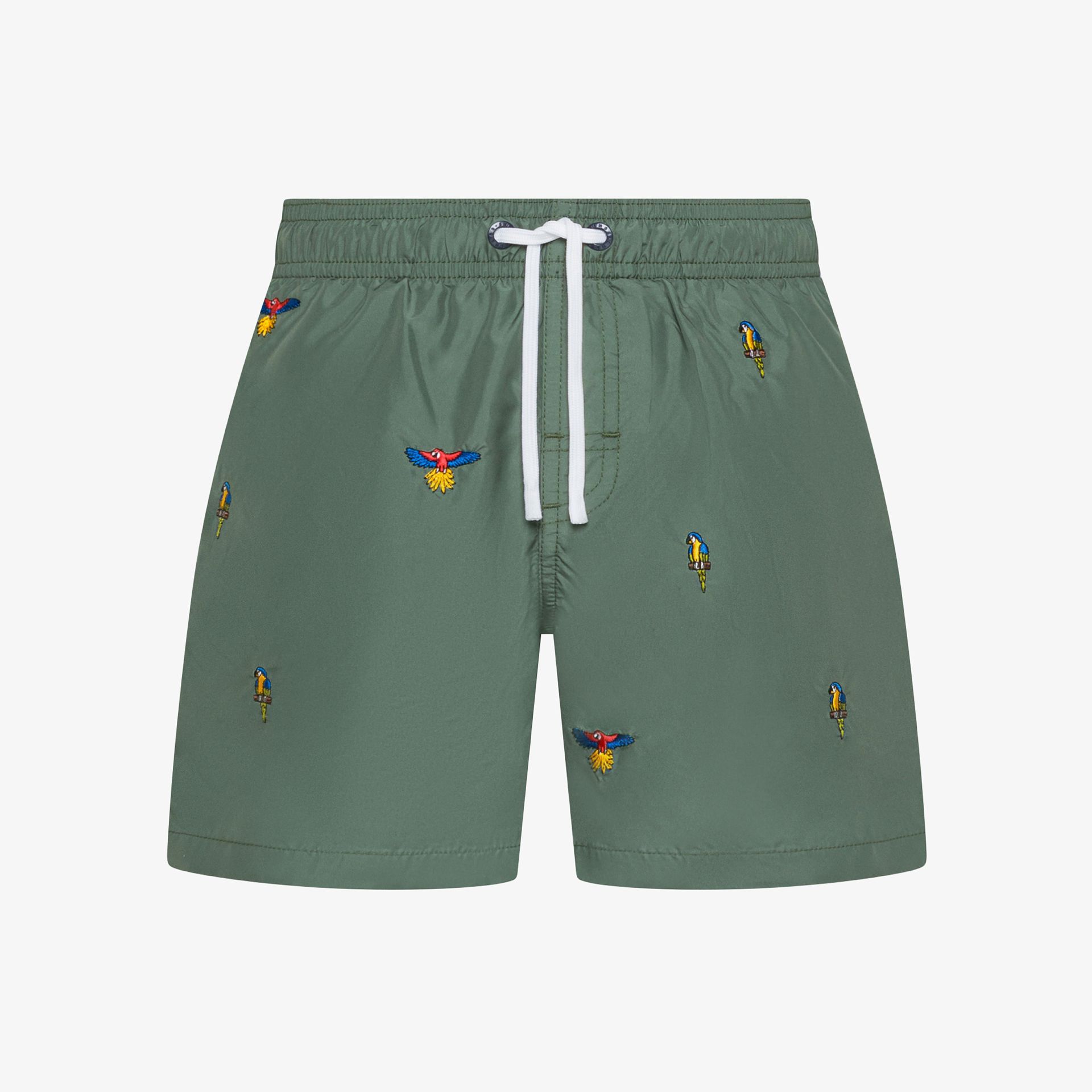 Shorts mare in nylon con ricami verde militare