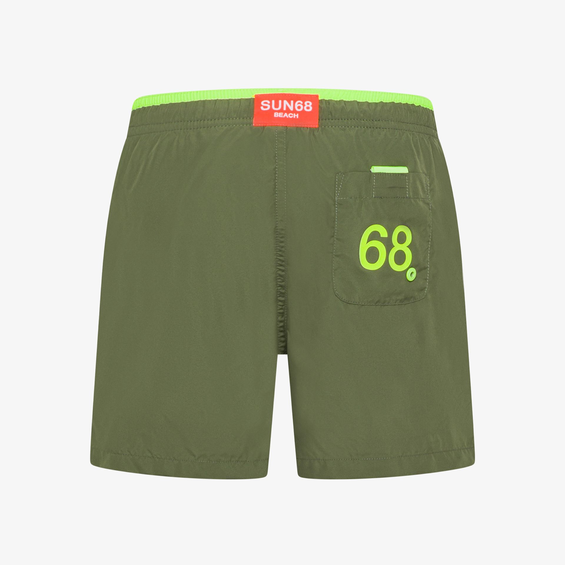 Label fluo SUN68 sul davanti e sul retro