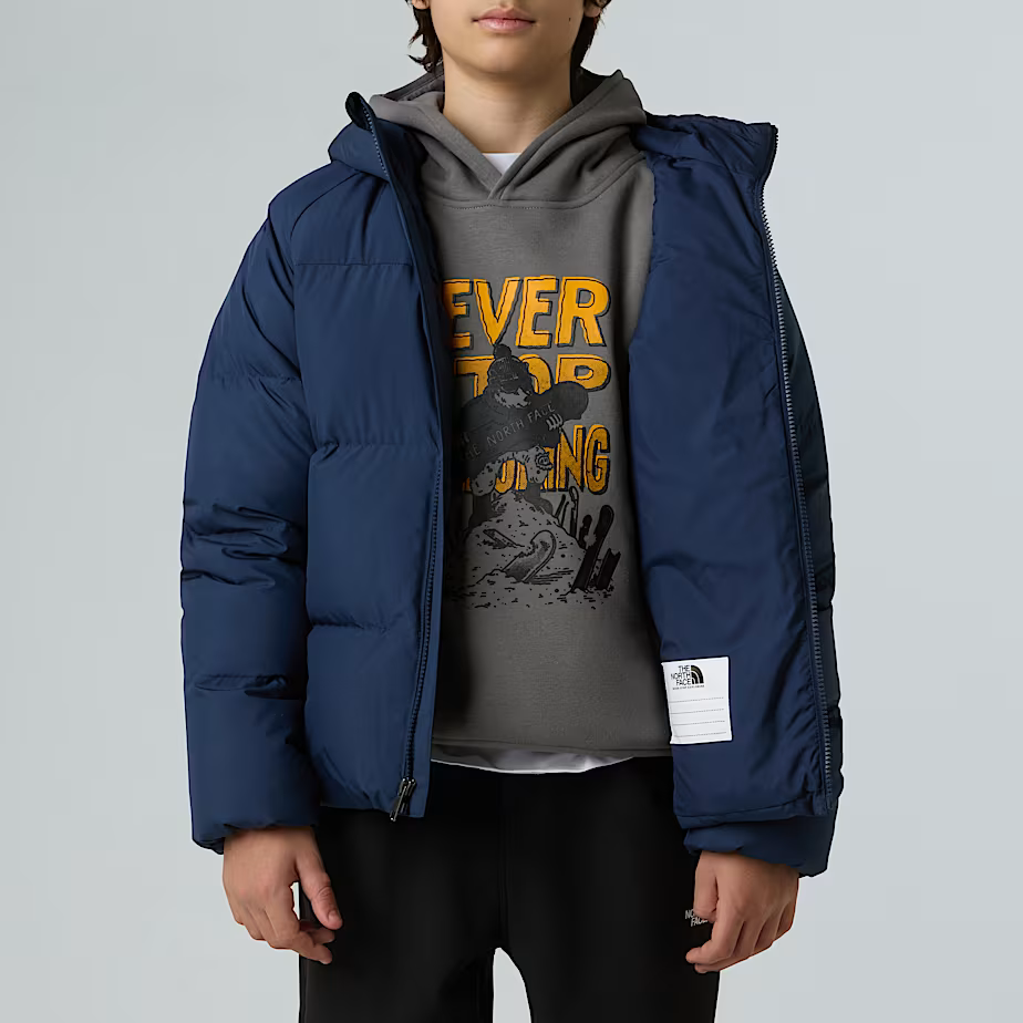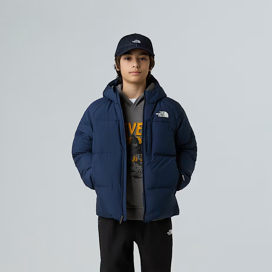 Per le fredde giornate invernali, proteggi il tuo esploratore con la giacca North Down con cappuccio. Imbottita con un piumino incredibilmente caldo e leggero, questa giacca lo terrà al caldo sia in montagna che in città. È anche ricca di pratici dettagli, come il confortevole cappuccio, le maniche raglan e le pratiche tasche con cerniera. E non è tutto: i materiali riciclati la rendono una scelta migliore per la natura.
