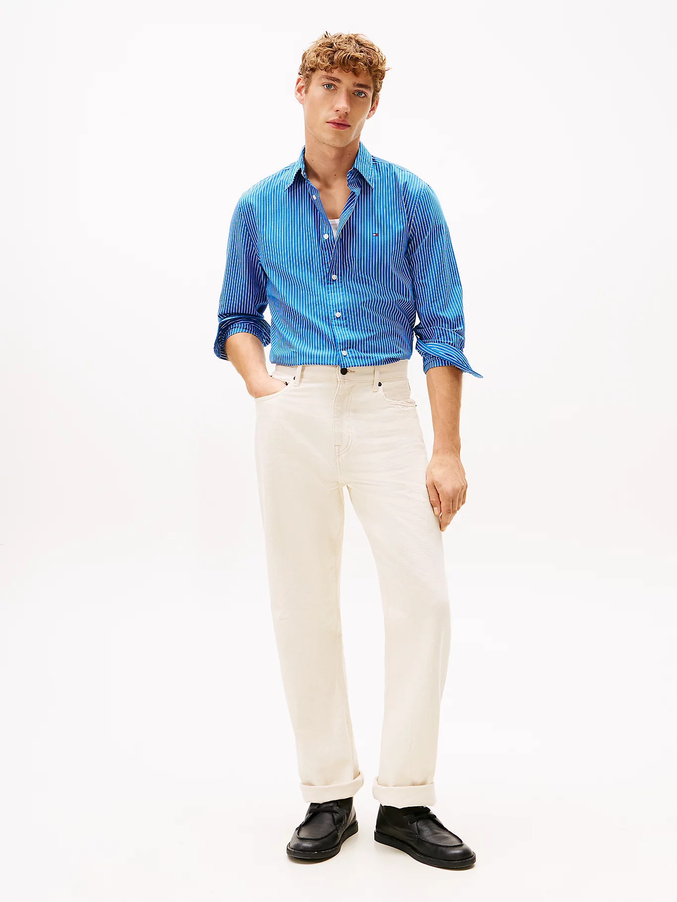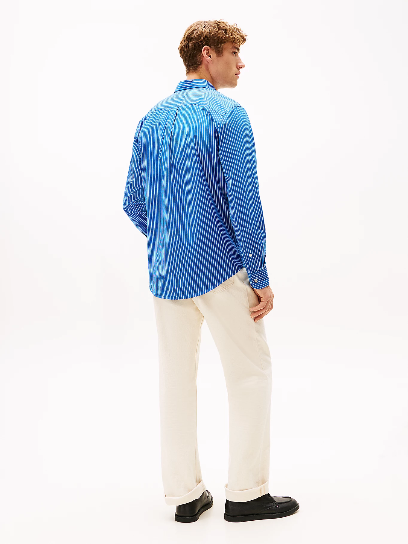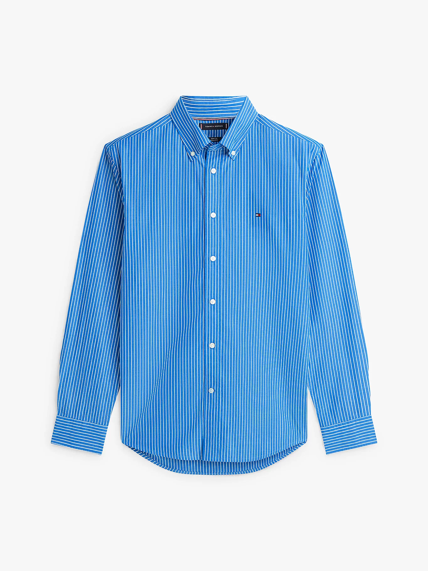 La camicia regular fit in tessuto stretch a quattro direzioni, con il colletto button down e il motivo gessato all over, aggiunge un tocco sofisticato agli outfit più formali.