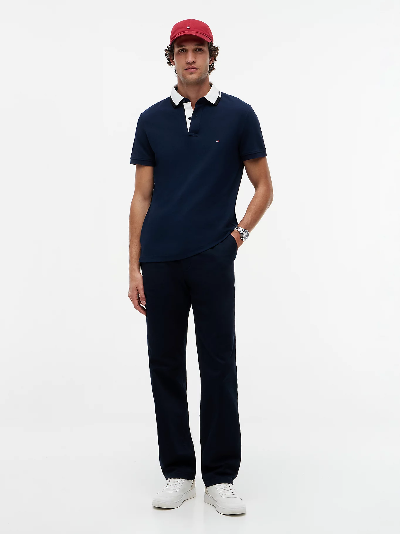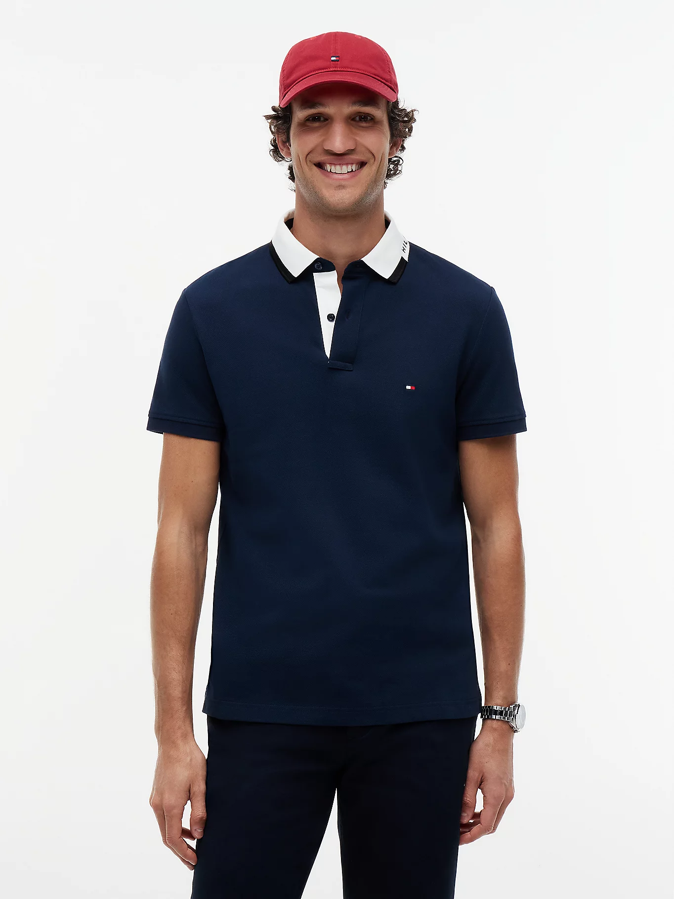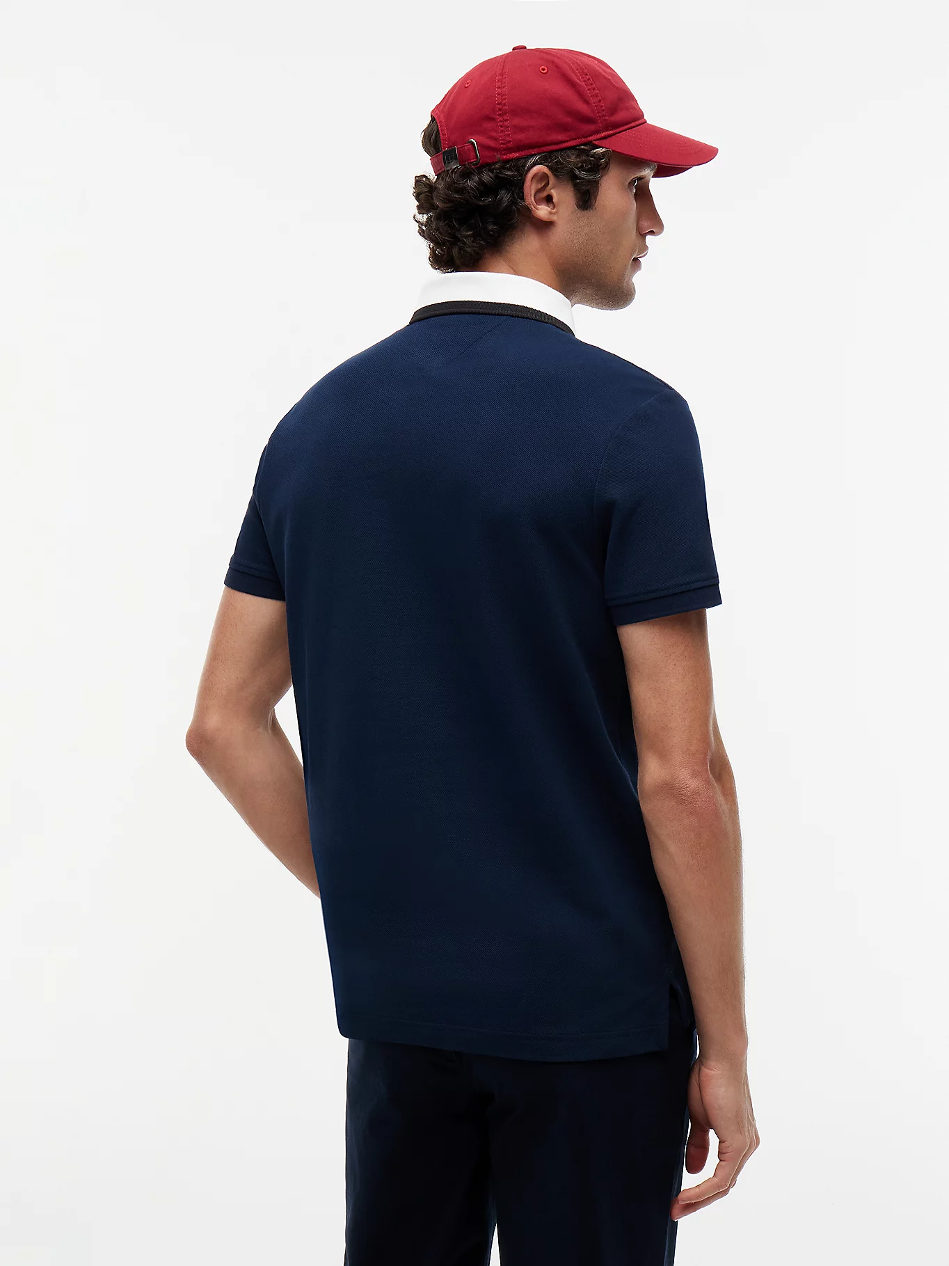 Il colletto con riga a contrasto sul bordo e logo ricamato aggiunge un tocco raffinato alla polo, realizzata nel classico tessuto piqué di cotone stretch.