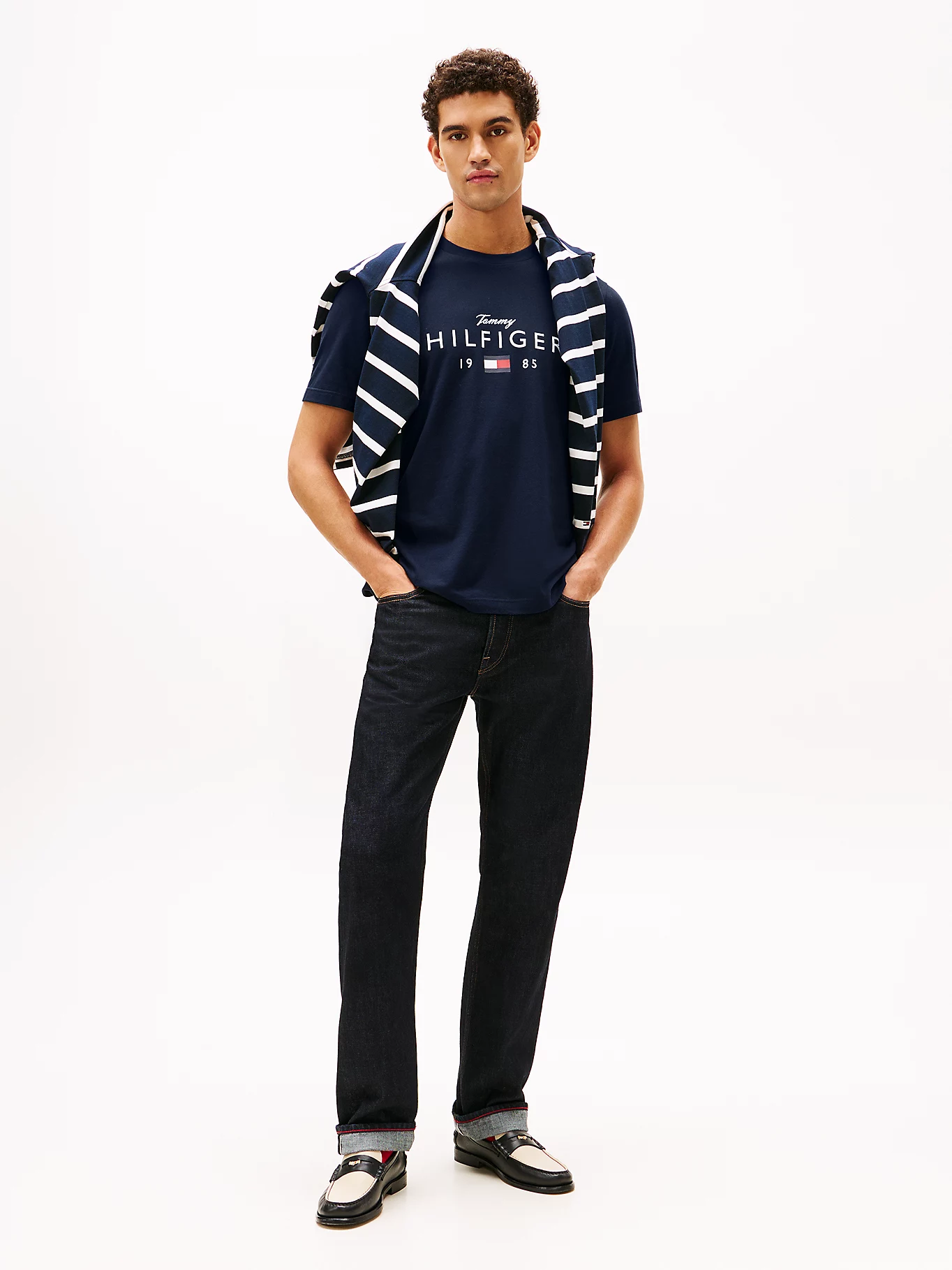 La T-shirt in jersey di puro cotone esprime tutto lo stile iconico del brand, grazie alla grafica con logo in maiuscolo e bandierina sul petto.