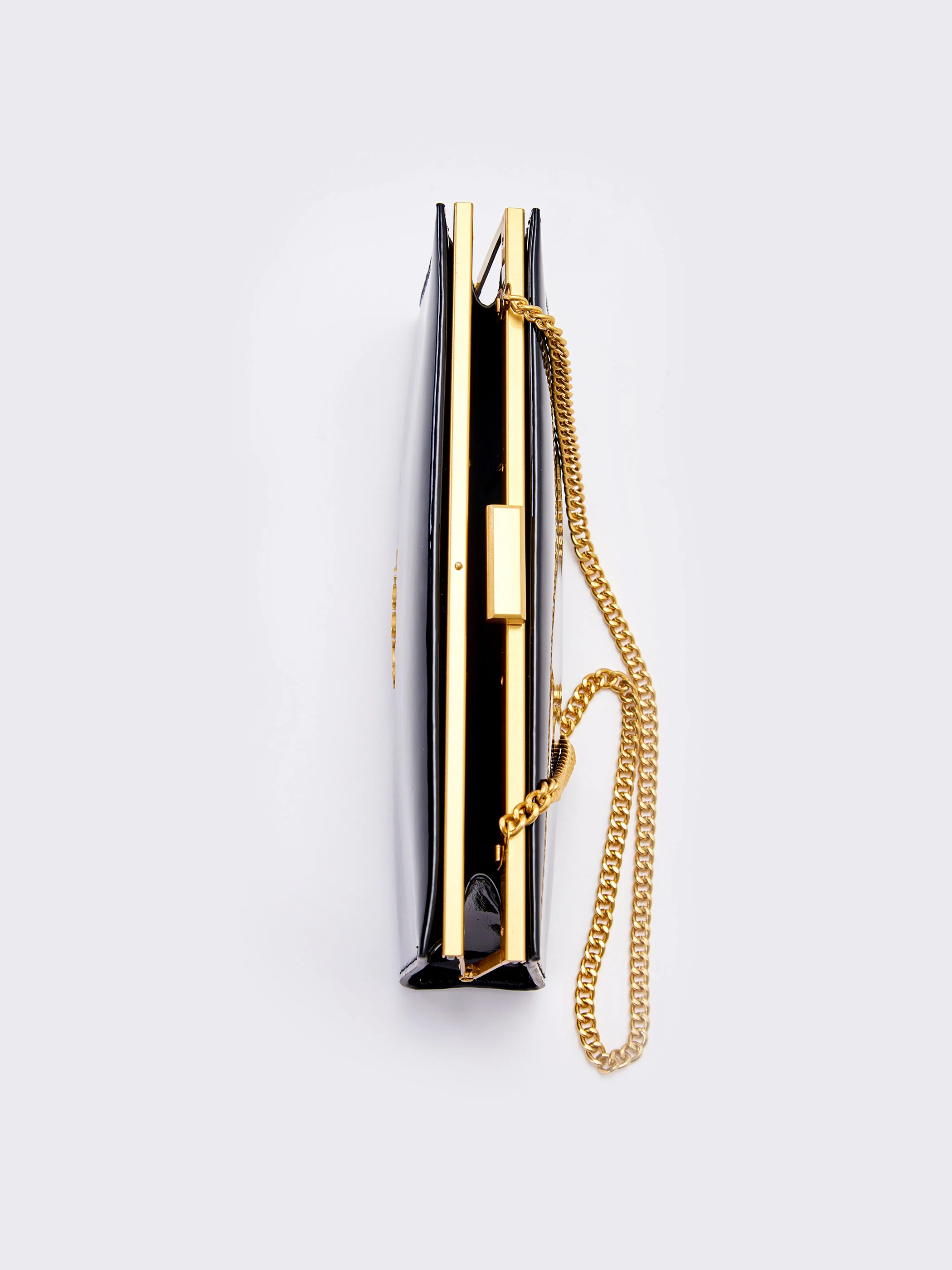 Borsa Ginger clutch in vernice. Loco Vicolo metal plate. Chiusura a moschettone. Tracolla con catena removibile. La borsa può essere indossata come borsa a spalla, a tracolla e come borsa a mano. Dettaglio finiture lucide color oro. Tasca interna.
