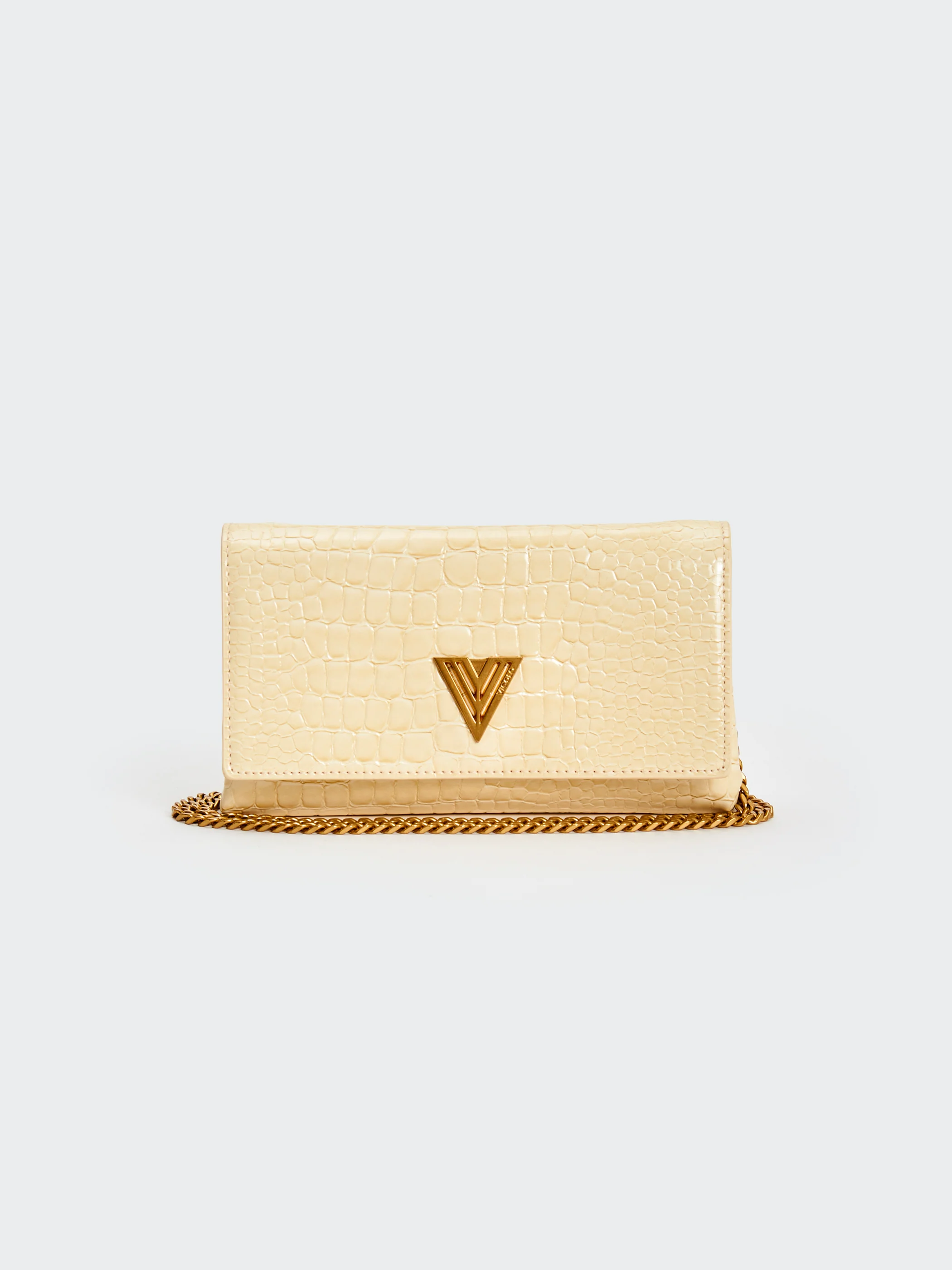 Borsa Shibuya a tracolla in ecopelle effetto "coco" in vernice. Chiusura a pattina con bottone a pressione con calamita. Dettaglio fibbia V metal plate Vicolo. Tracolla con catena removibile. La borsa può essere indossata come borsa a spalla, a tracolla e come borsa a mano. Dettaglio finiture anticate color oro. Tasca interna con cerniera e taschina piatta, doppio scomparto interno in tessuto.